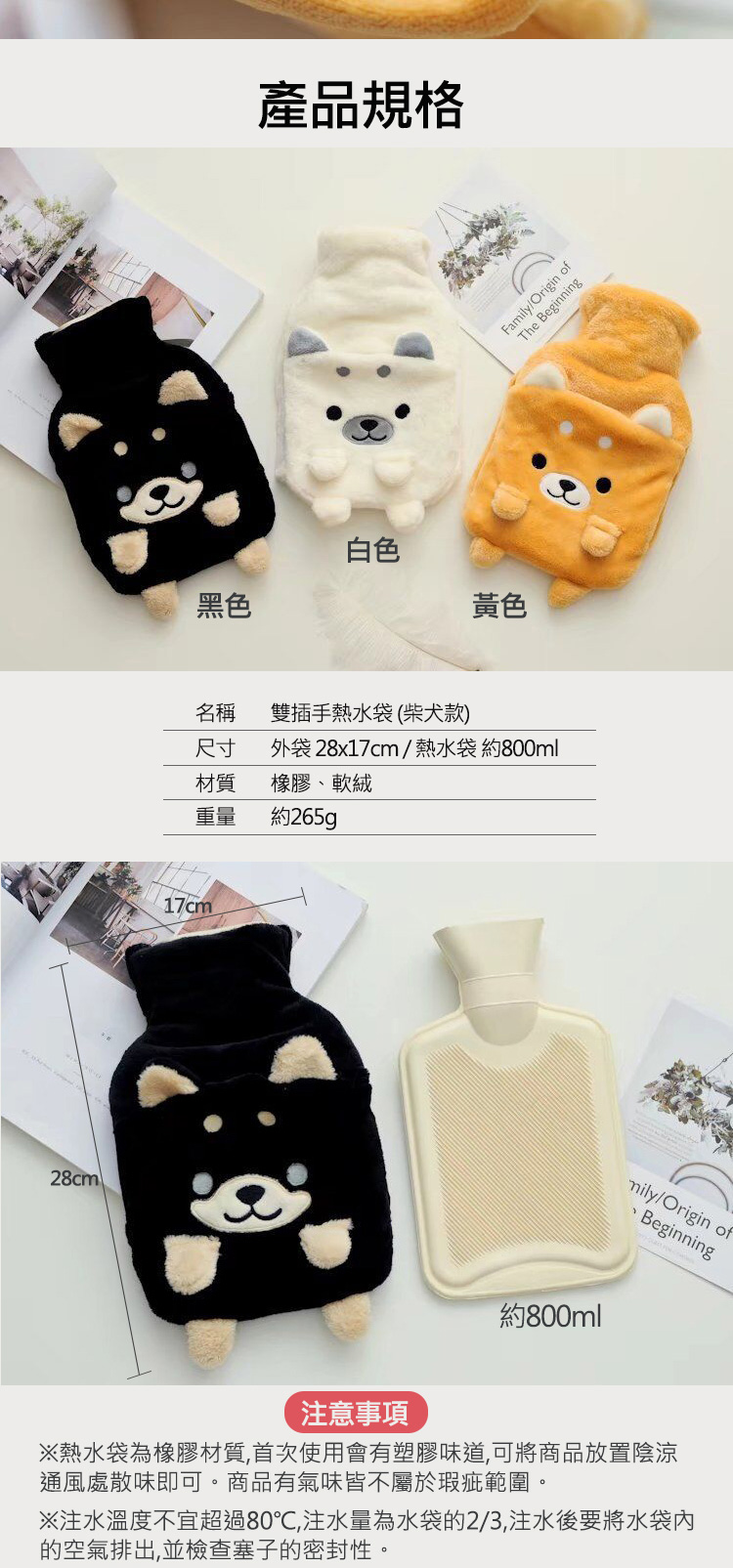 ◆尺寸:外袋 28x17cm/熱水袋容量約800ml