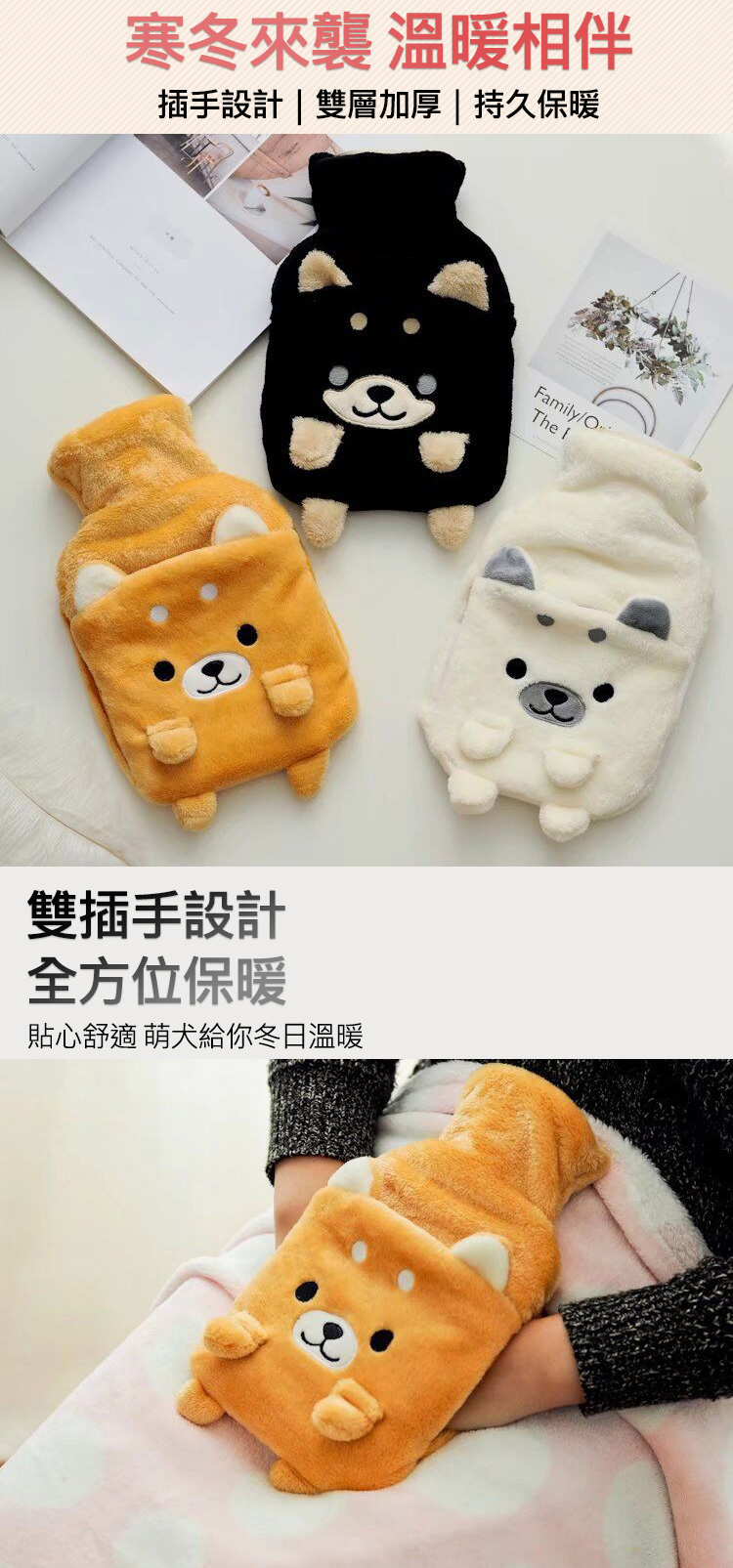 ◆名稱:雙插手熱水袋 (柴犬款)