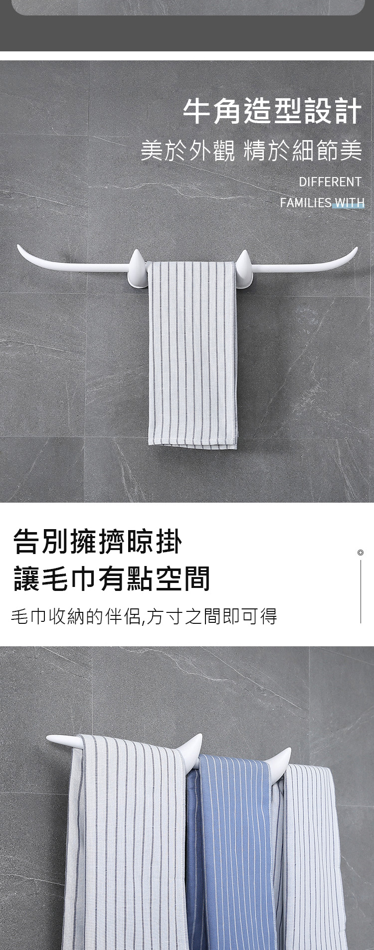 ◆尺寸:毛巾桿總長約69cm、牛角寬約11cm