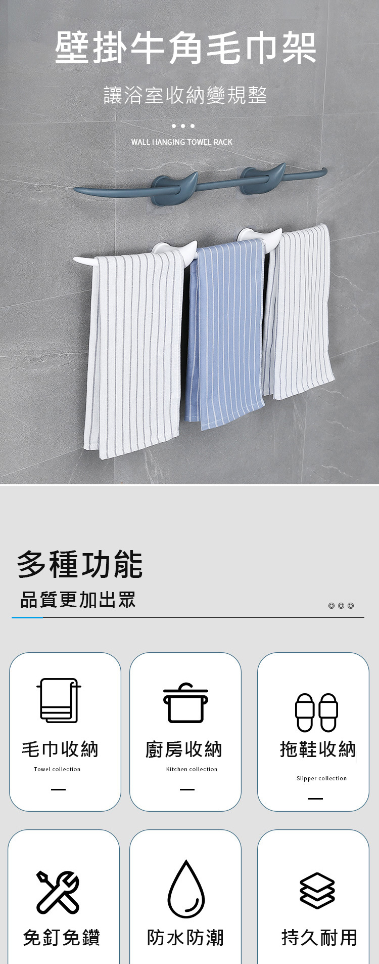 ◆多種用途可掛毛巾、擦手巾,亦可當拖鞋架或廚房掛架