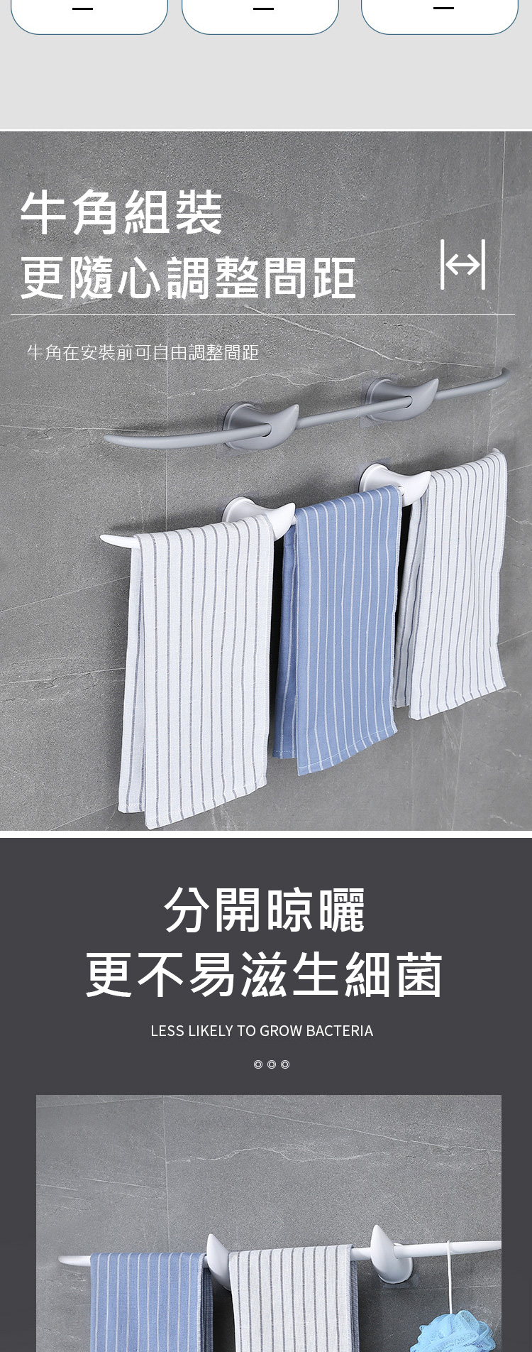 ◆可掛多條毛巾,最多可掛3條毛巾