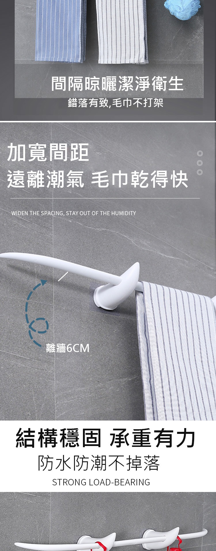 ◆離牆面約6cm,遠離潮氣毛巾乾的快
