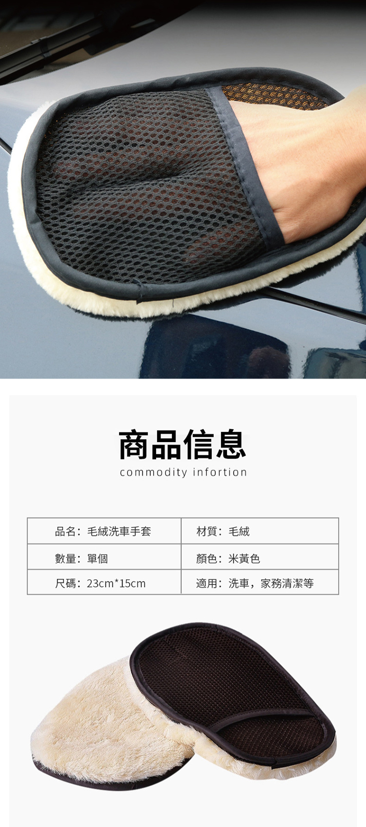 名稱:擦車羊毛網布手套