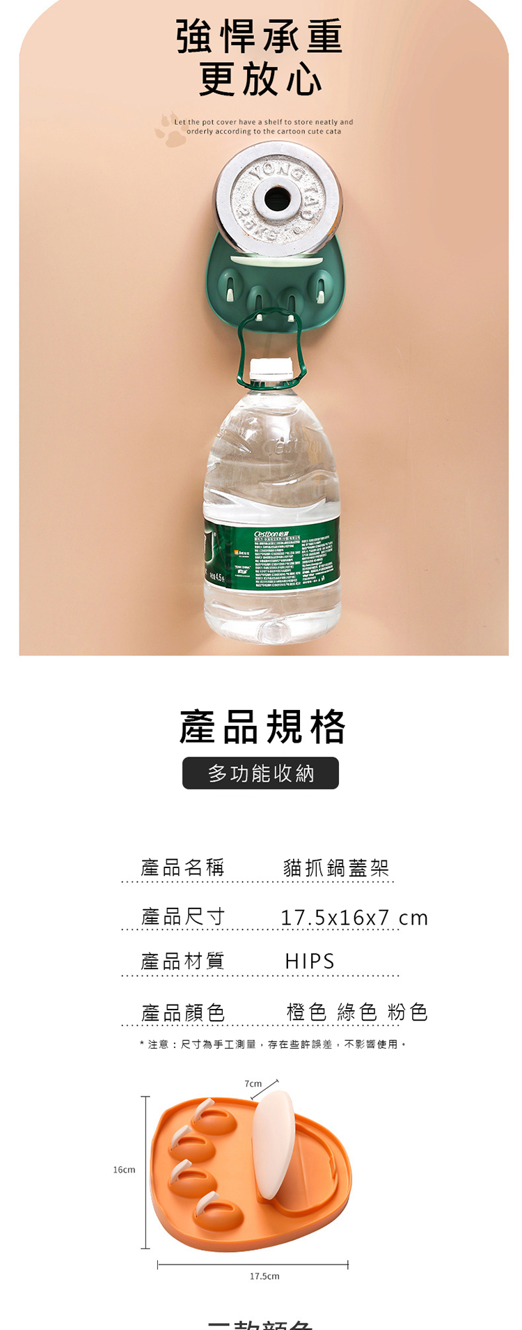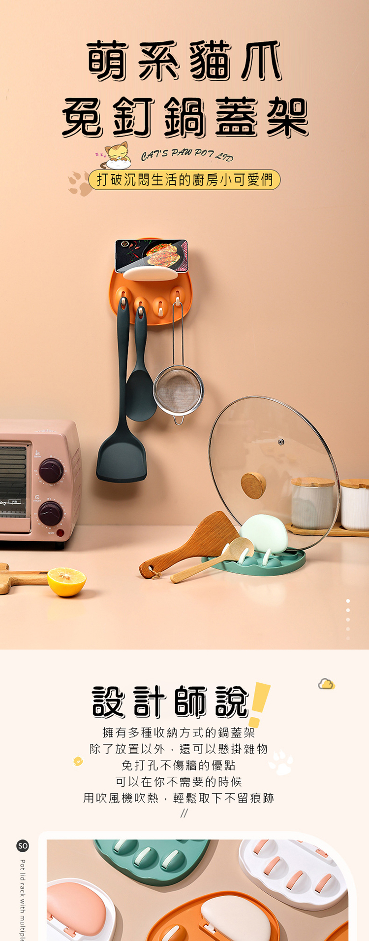 貓爪鍋蓋架 廚房免打孔鍋蓋架 餐具收納置物架 置物架 鍋蓋放置架