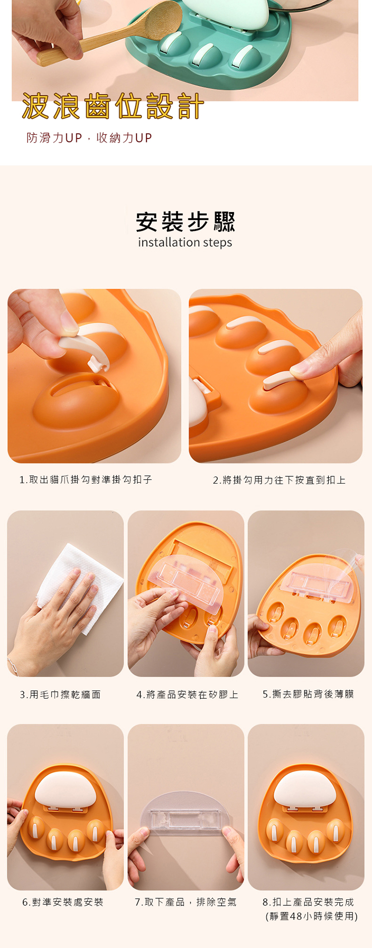 3. 請勿放置貴重物品及超重使用。(因安裝方式的差異,使用的黏性也有差異,如果出現掉落損傷物件的情況,本公司概不負責)