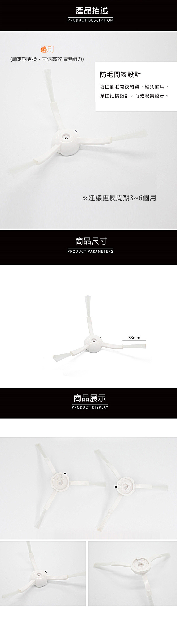 邊刷~V字形膠毛一體設計,達到高效清掃效果