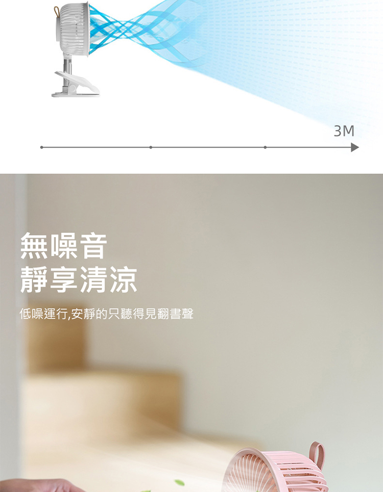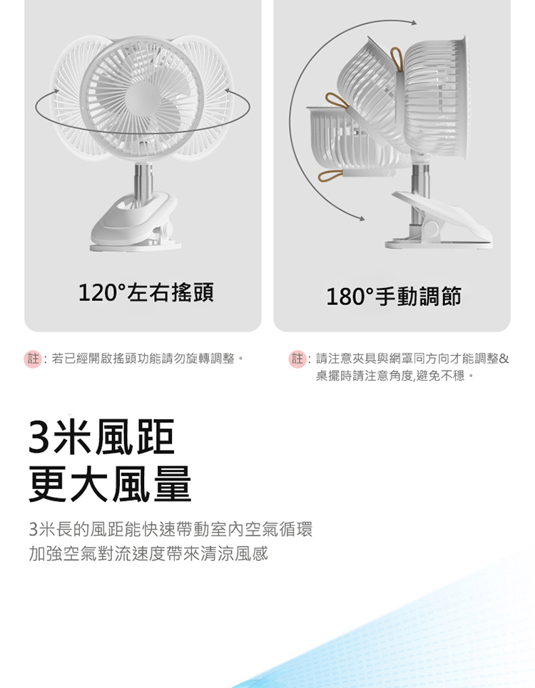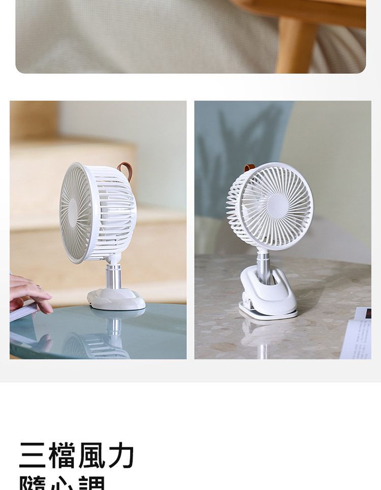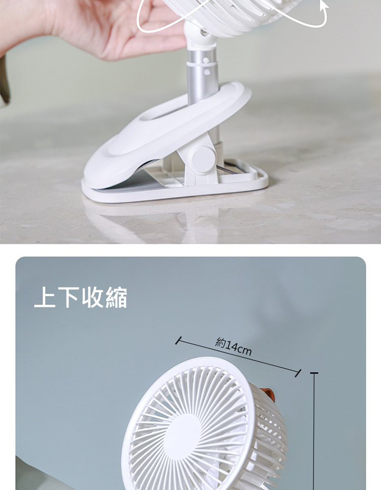 搖頭夾式風扇 桌面夾式風扇 自動擺頭 多角度+伸縮+壁掛 三檔風量 嬰兒車/宿舍/辦公室 (USB充電)