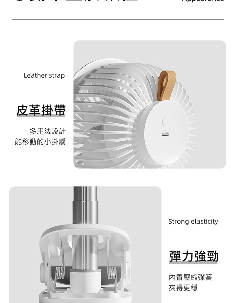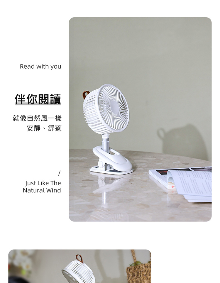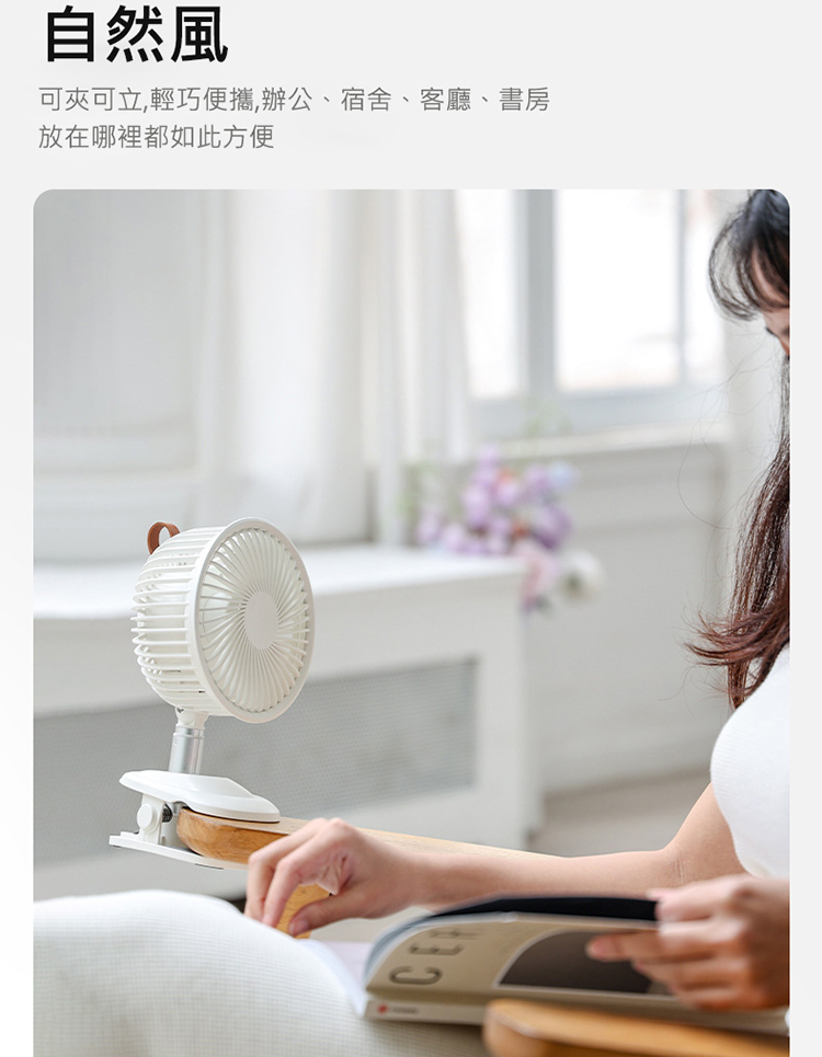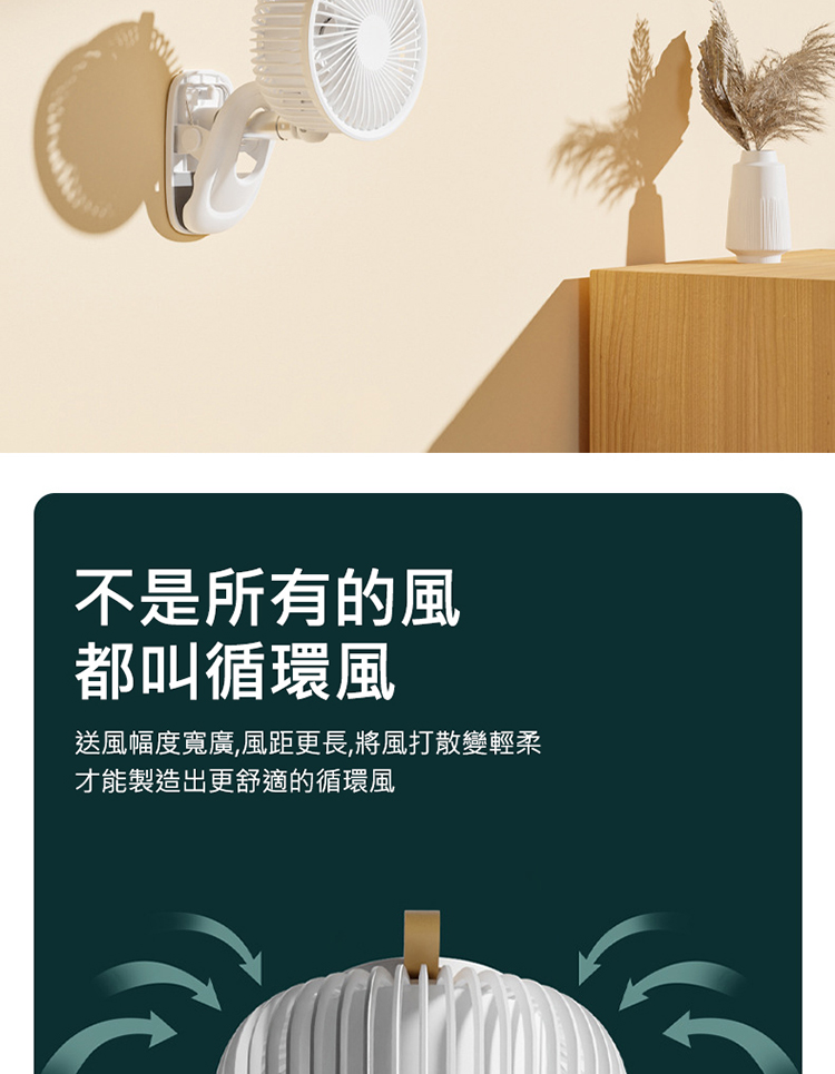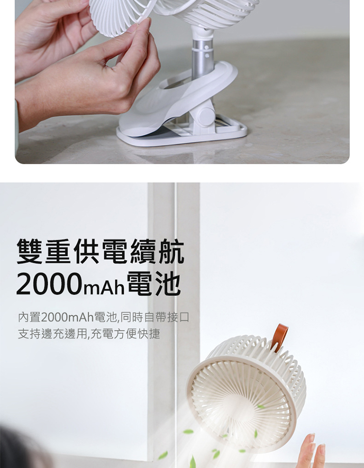 搖頭夾式風扇 桌面夾式風扇 自動擺頭 多角度+伸縮+壁掛 三檔風量 嬰兒車/宿舍/辦公室 (USB充電)