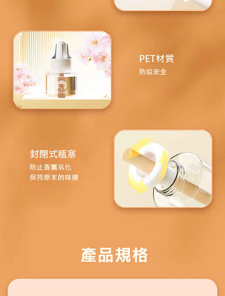 *液體電蚊香補充瓶若孔徑/高度相同,亦可自行替換成電蚊香液,變成驅蚊器。