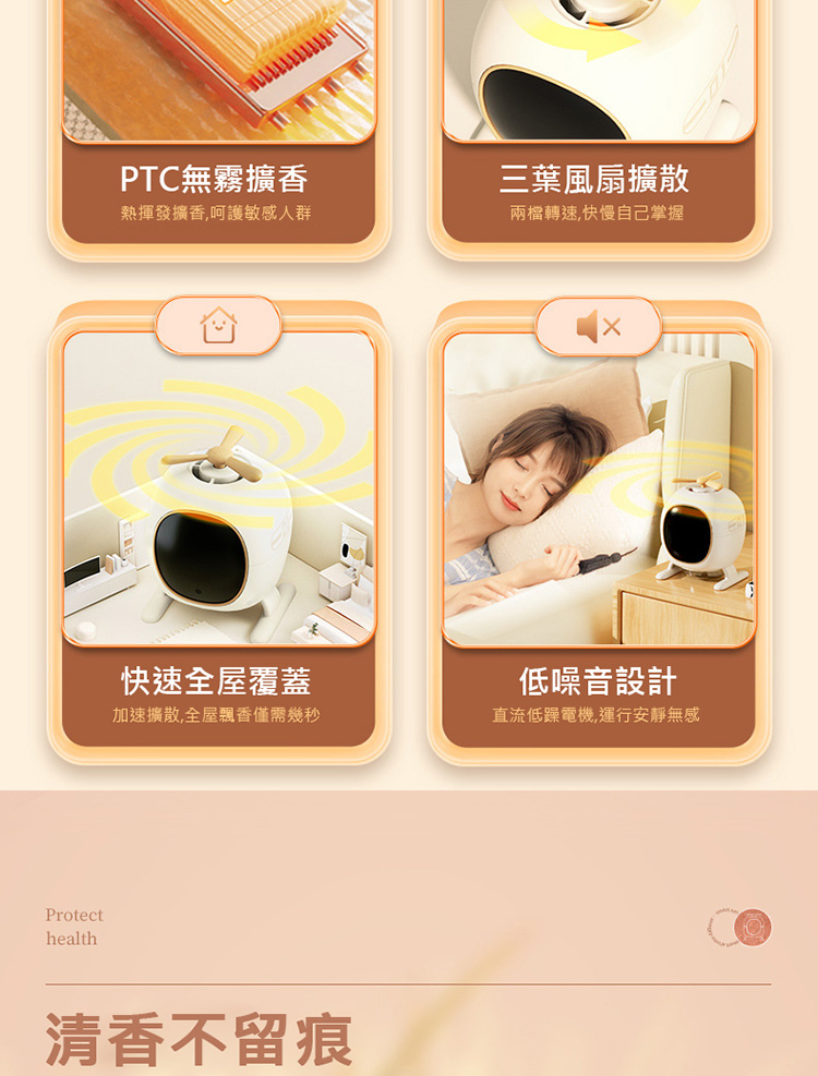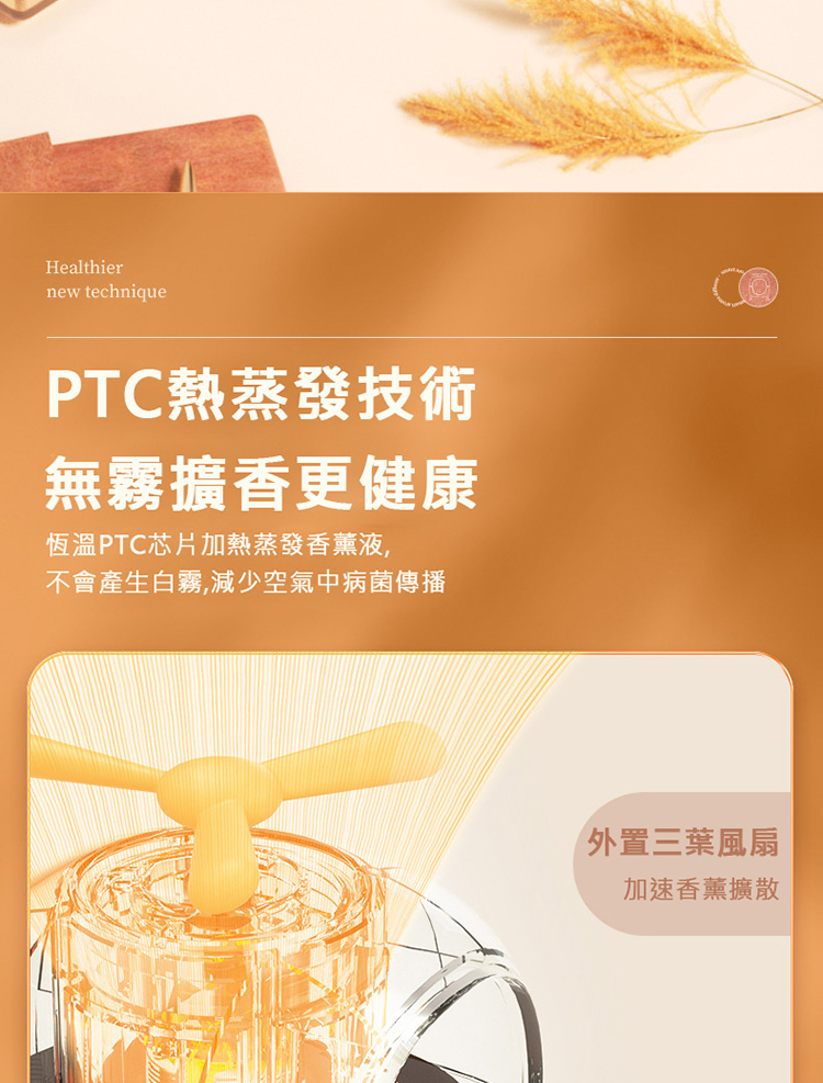 ◆恆溫PTC蒸發技術,無霧揮發擴香,呵護敏感族群