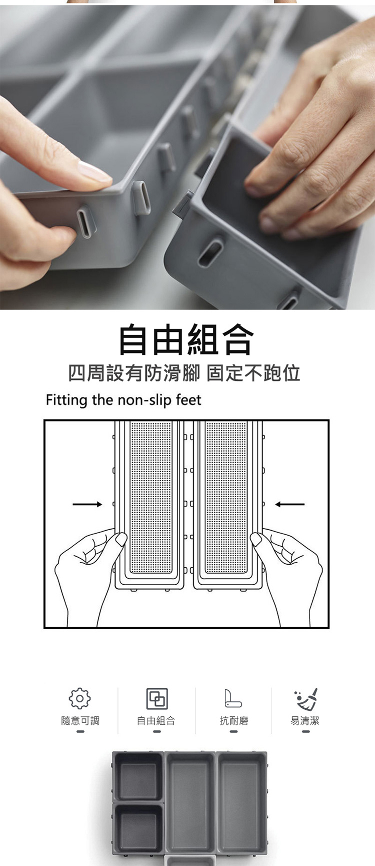 ◆可依照抽屜大小拼裝,使用不受限