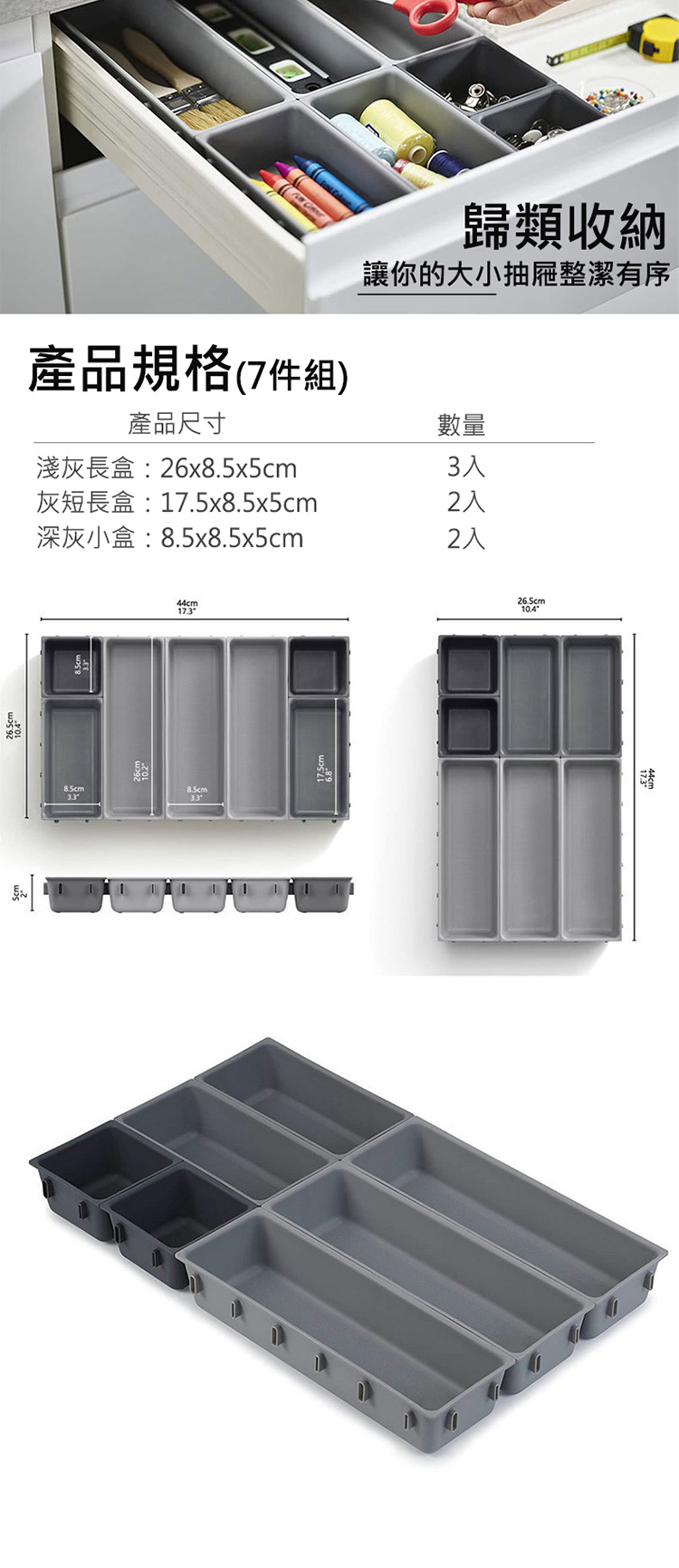 ◆內容物:淺灰長盒x3+灰短長盒x2+深灰小盒x2