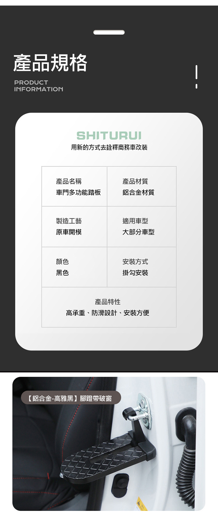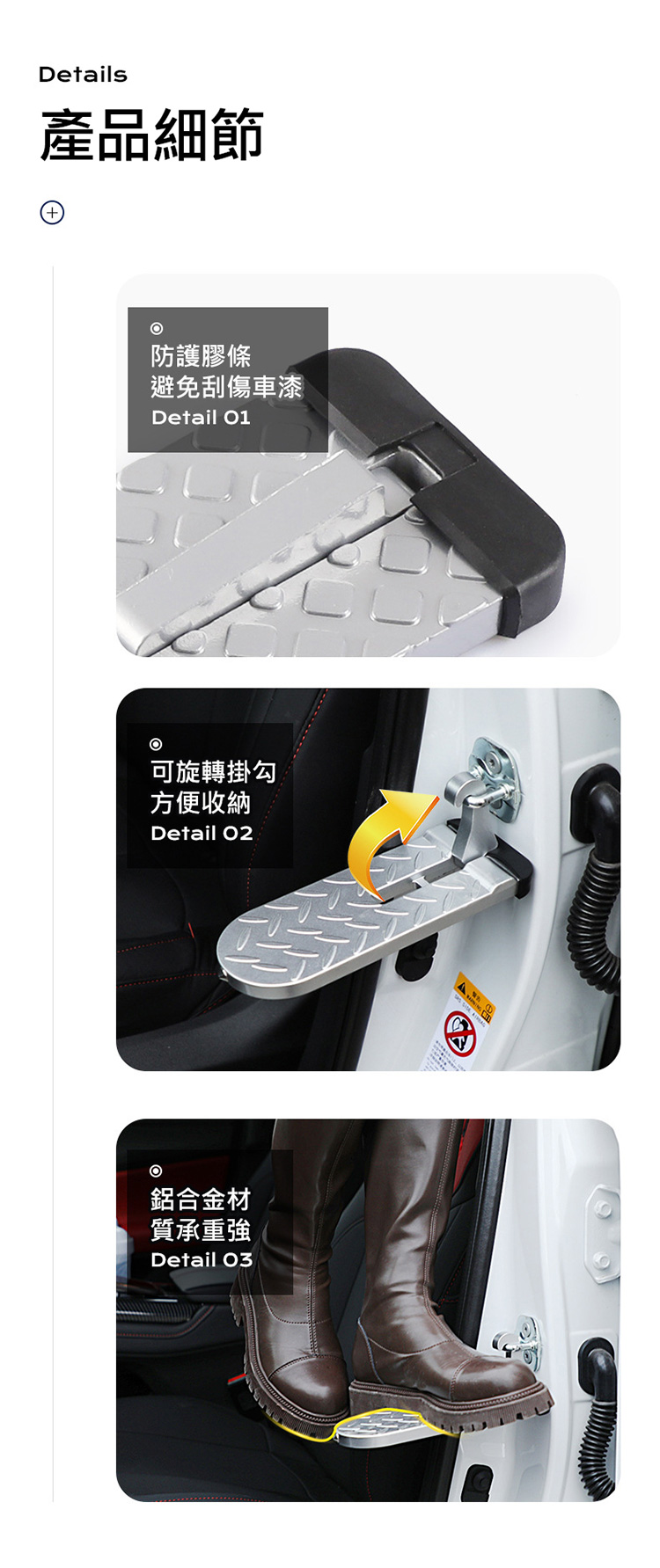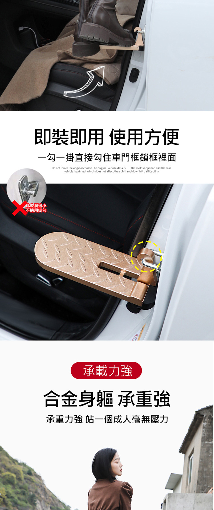 一勾一掛直接勾住車門框鎖框裡面,安裝完成增高踏板!