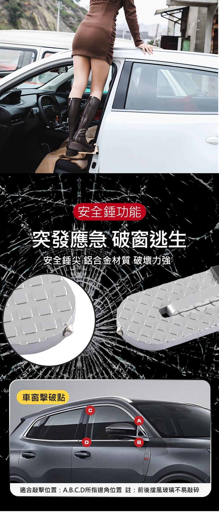 尖端有一圓錐頭,緊急時刻可協助破窗!