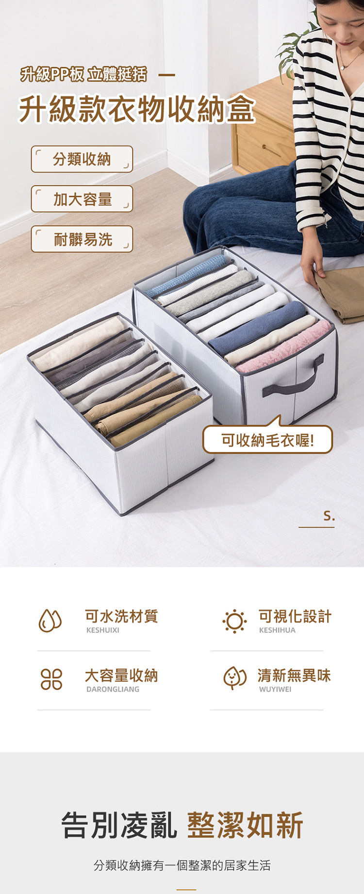 大容量收納,牛仔褲、毛衣皆可收納