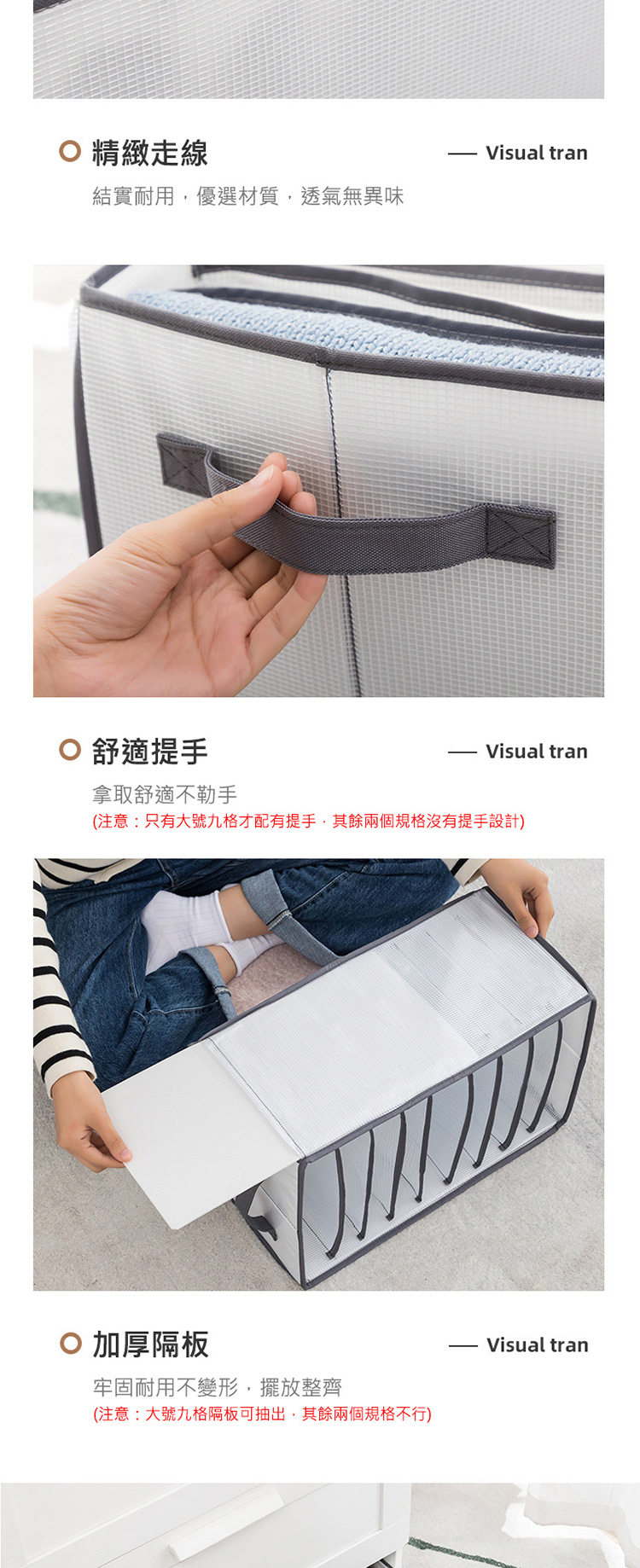 2.大號九格側邊隔板可抽出,其餘兩個規格不行