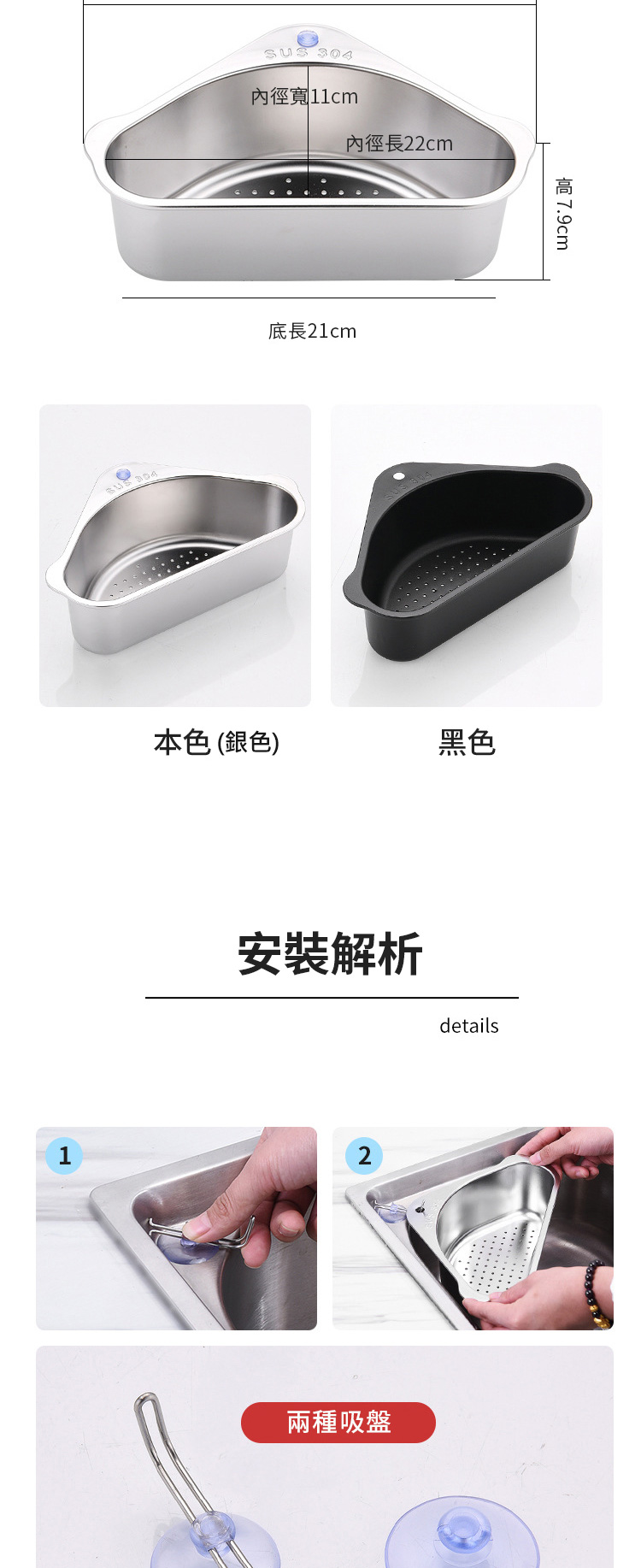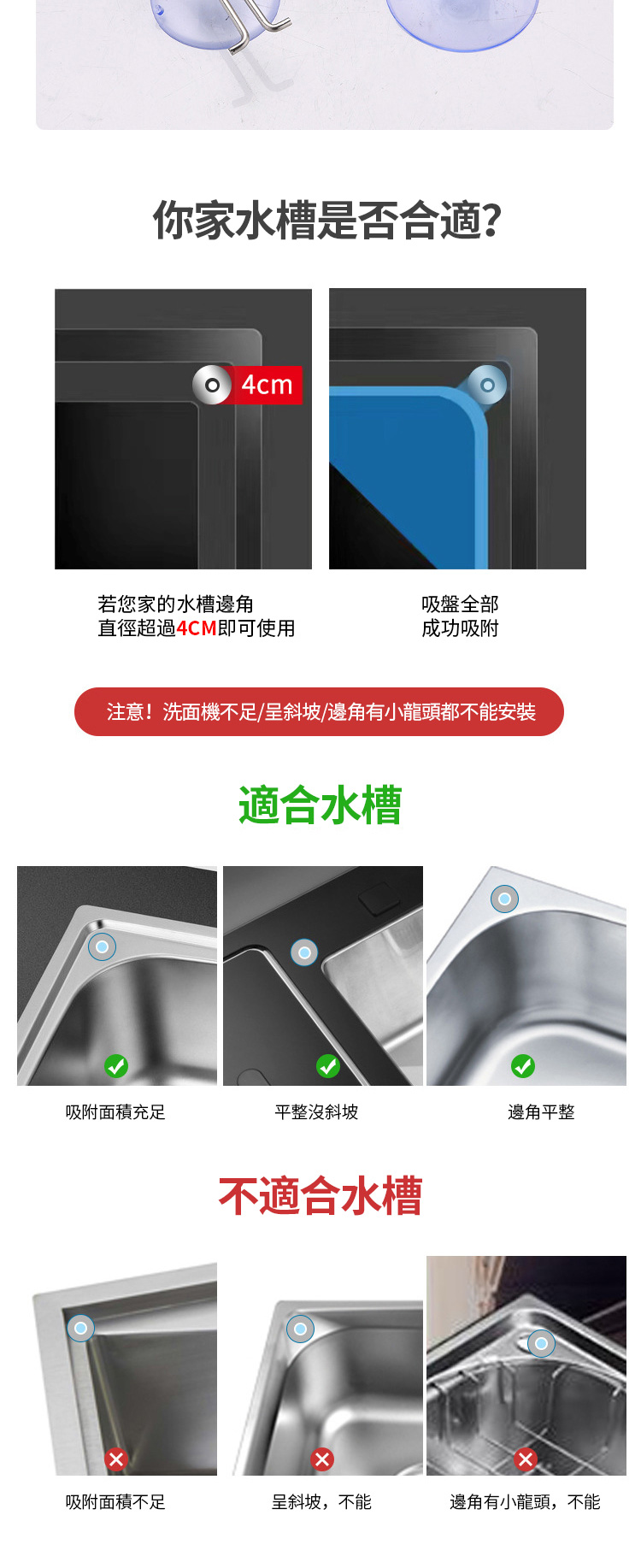 PS:水槽需擦拭乾淨,再安裝吸盤