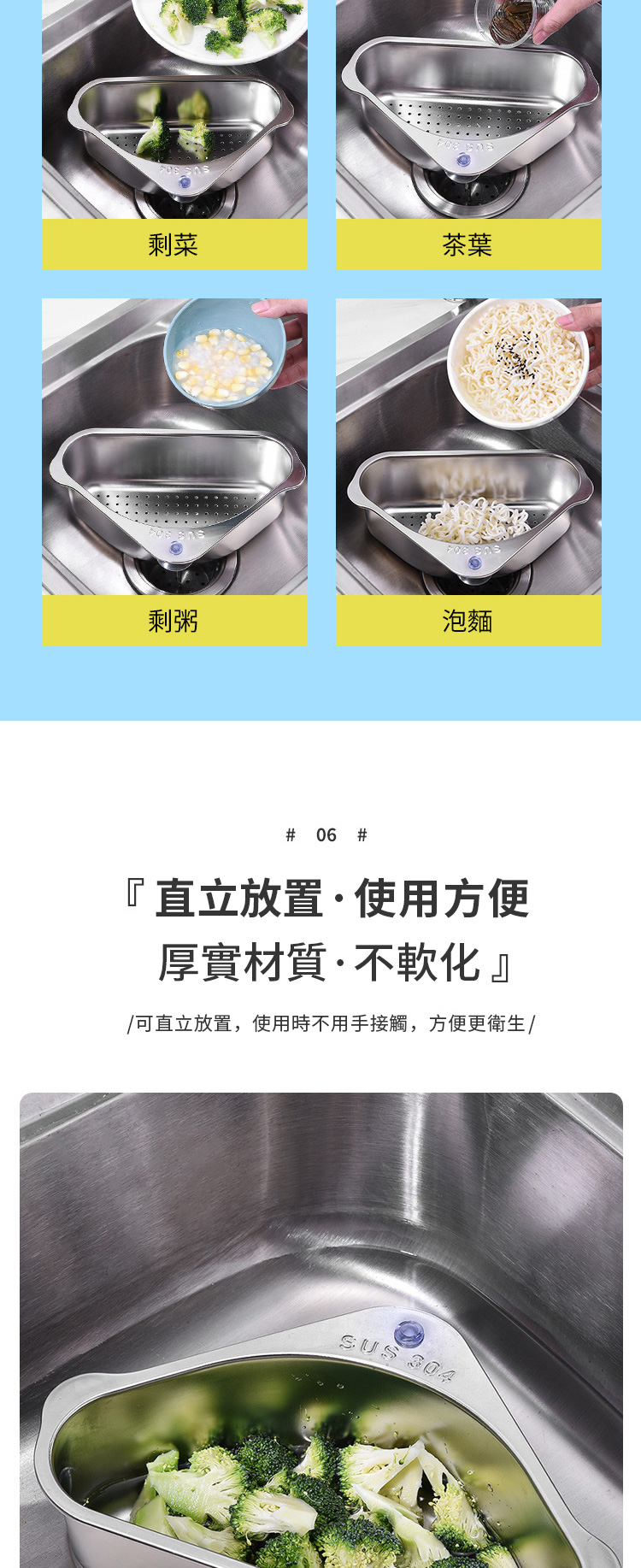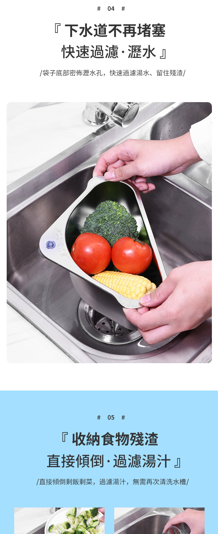 304不銹鋼 水槽瀝水籃 三角廚餘濾水籃 廚房瀝水籃 廚房廚餘 濾水架 廚房 水槽 瀝水