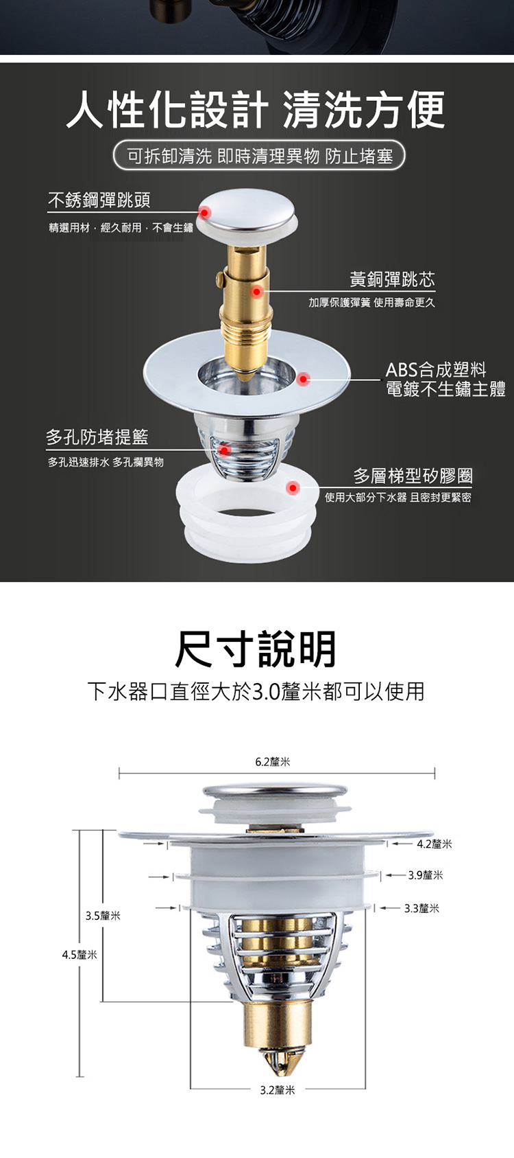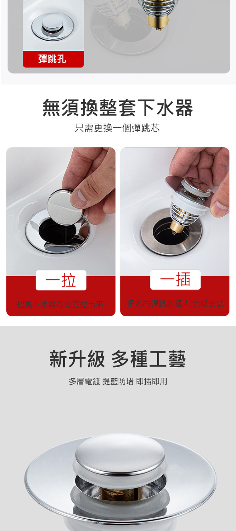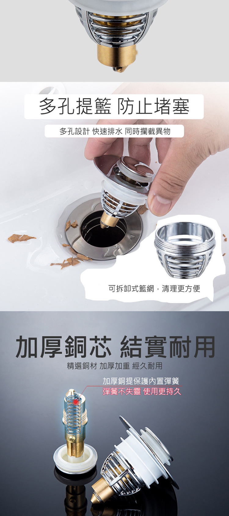 洗臉台下水器 溢水孔 按壓彈跳式 洗臉檯下水器 面盆下水器 洗手台下水器 按壓下水器