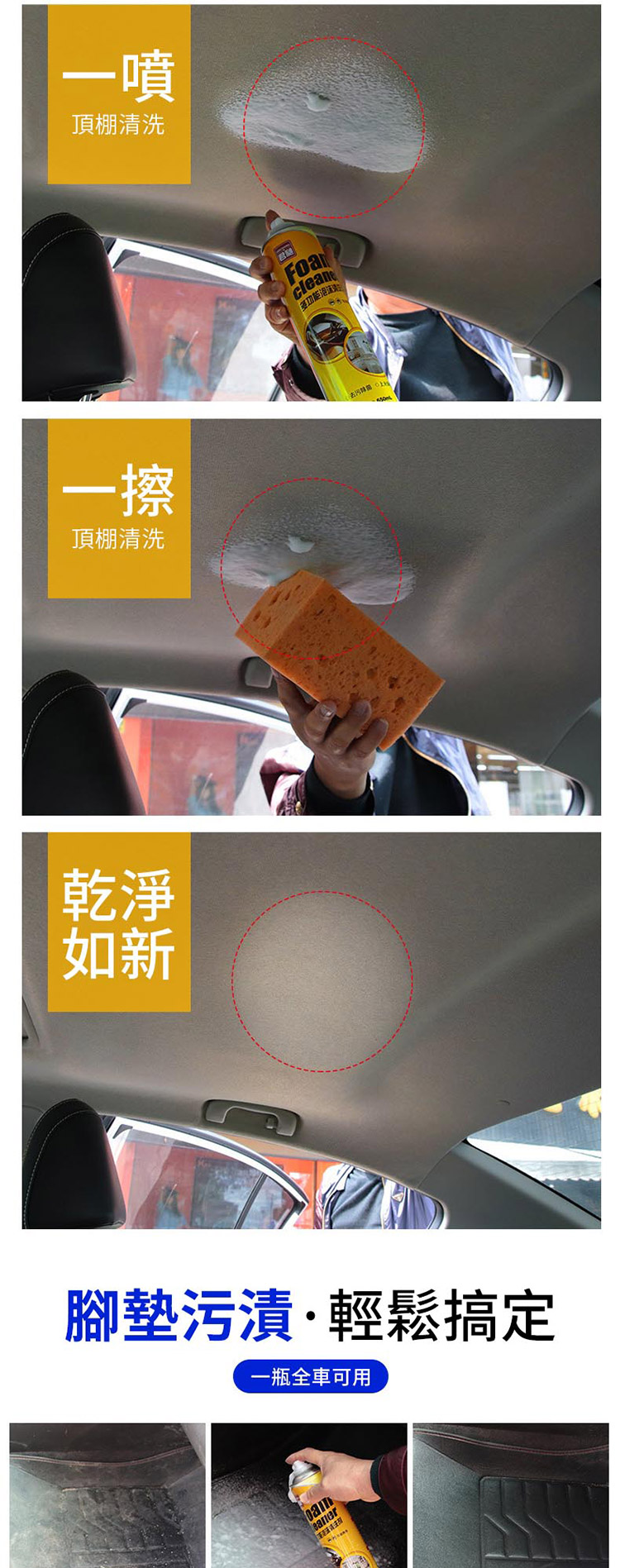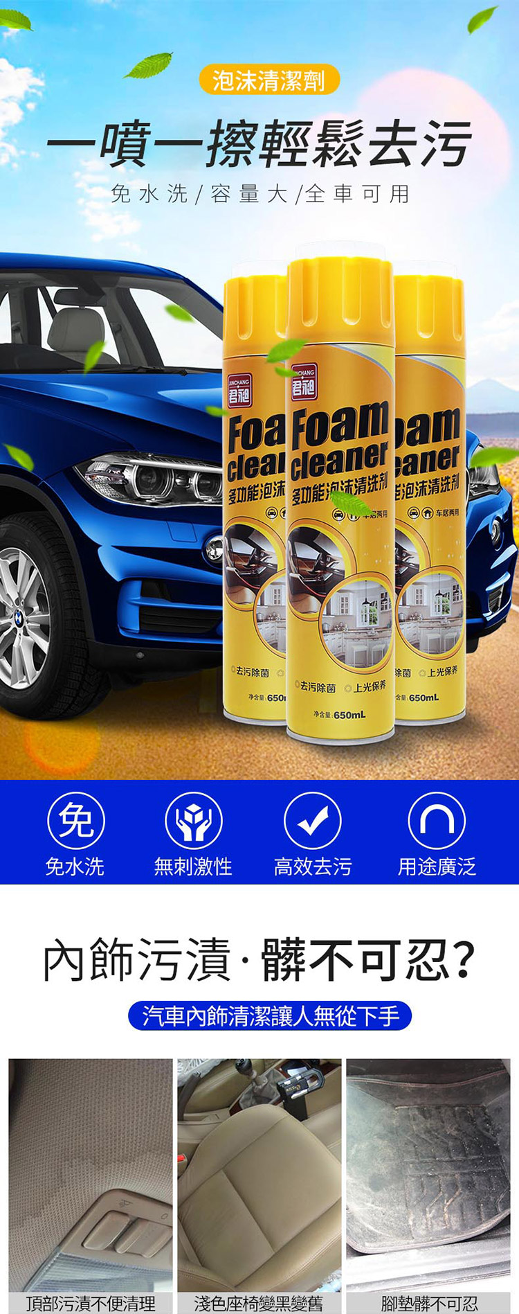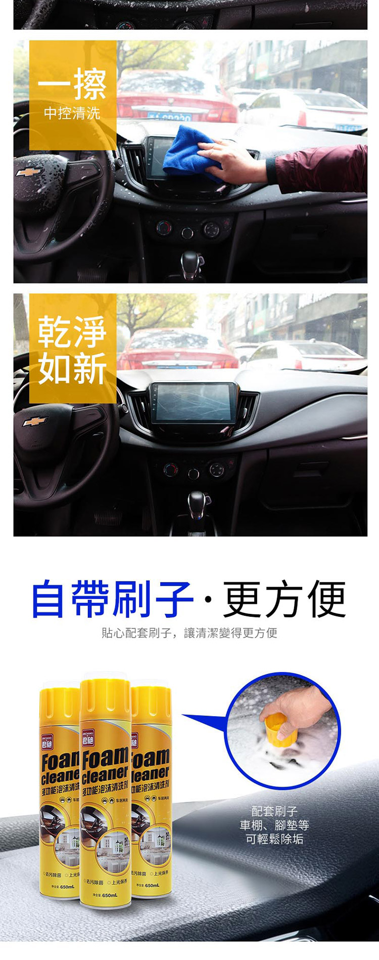 多功能泡沫清潔劑 清洗劑汽車 萬能泡沫清潔劑 座椅清洗劑 頂棚/內飾去污 洗車 美容用品/家居用品清潔650ml