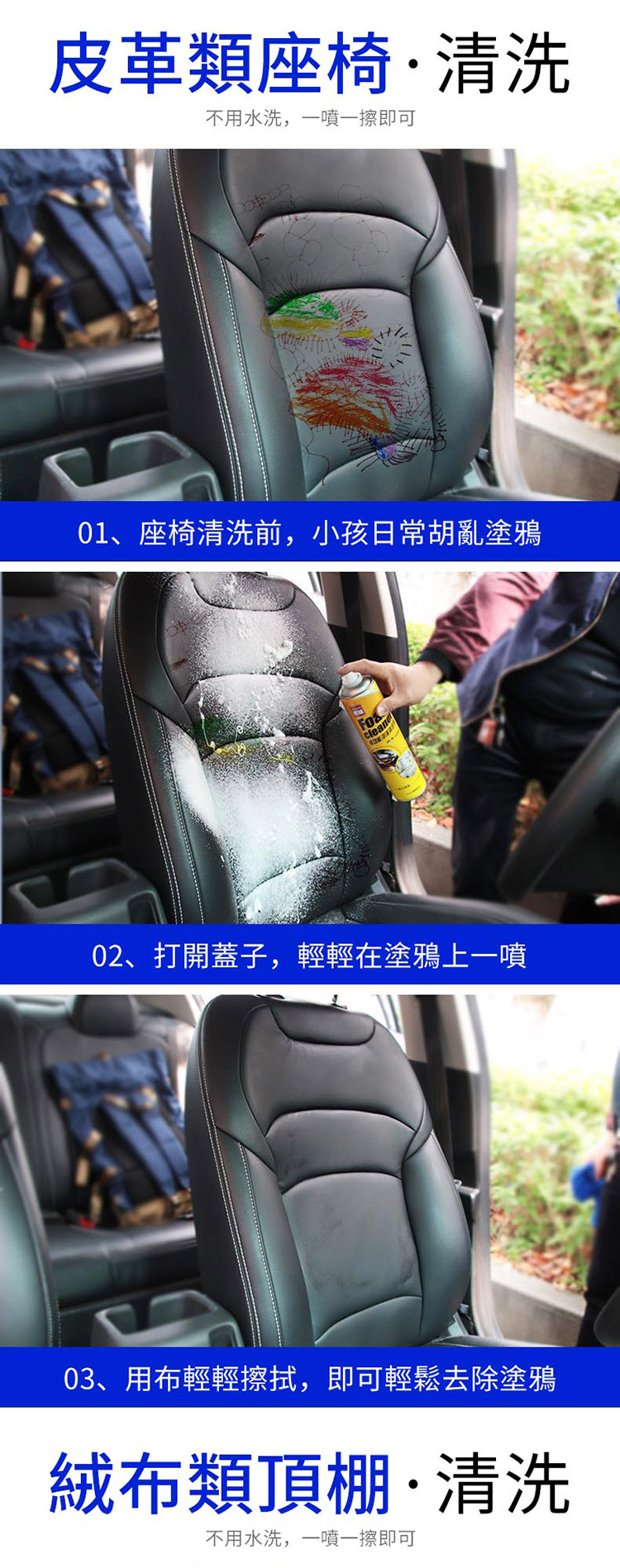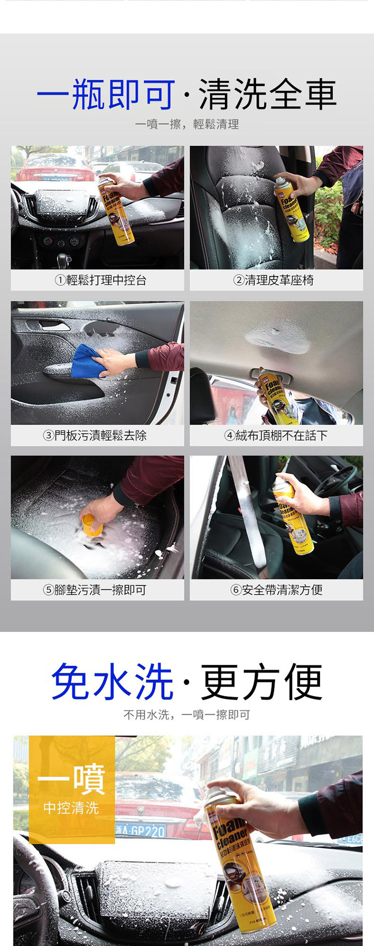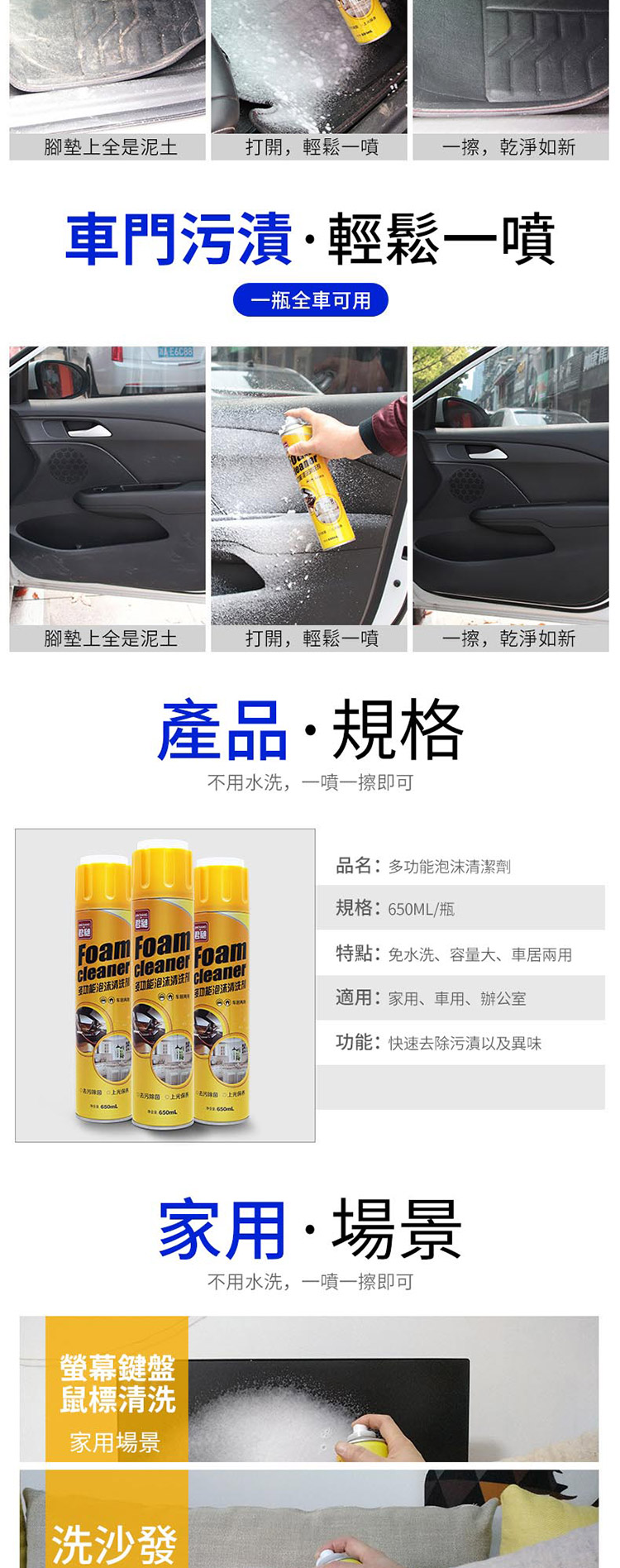 多功能泡沫清潔劑 清洗劑汽車 萬能泡沫清潔劑 座椅清洗劑 頂棚/內飾去污 洗車 美容用品/家居用品清潔650ml