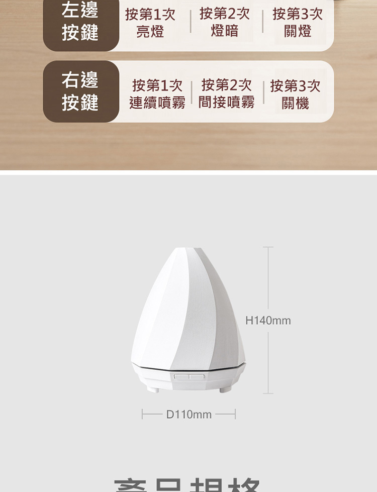這是一款精心設計的香氛水氧機,他運用現在超聲波震盪技術釋放香氛,配合舒適的LED燈光和精緻獨特的外型,讓您靜坐家中,享受高貴靖儀的香薰體驗。