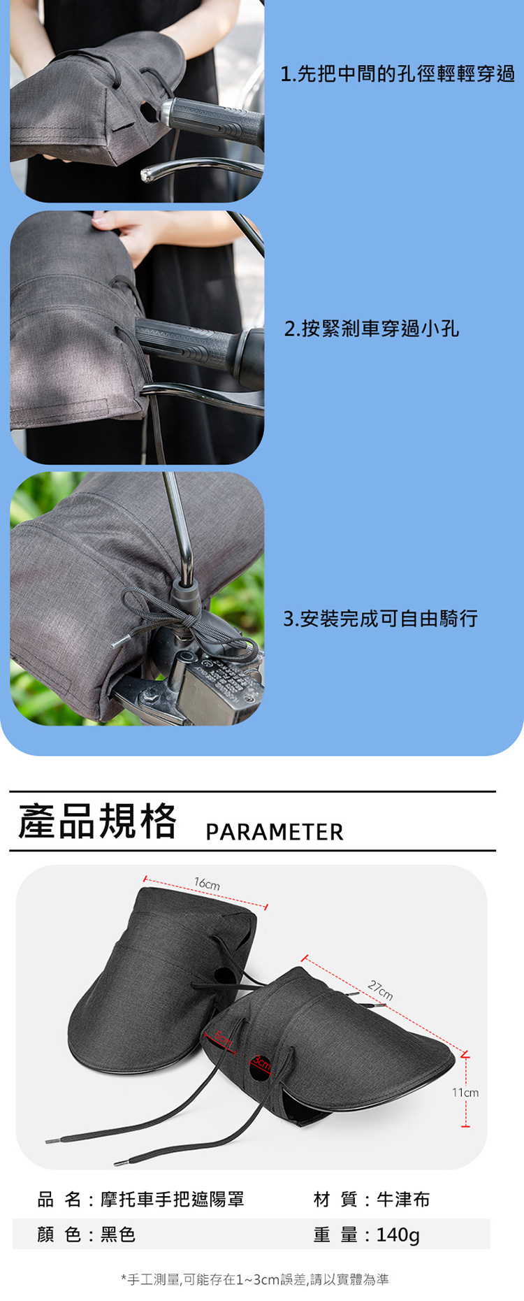 機車手把套 立體遮陽罩 防曬 防水 透氣 摩托車/電動車手把套 (1對) 外送員