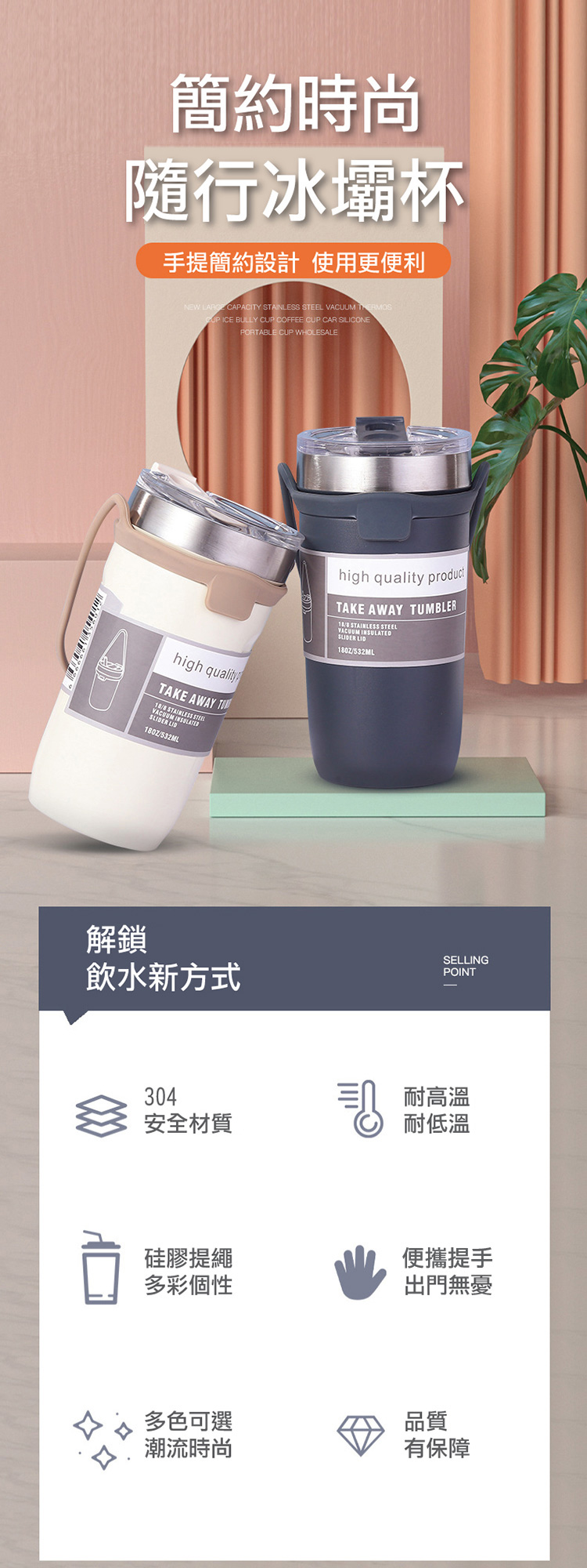 手提冰霸杯710ML 咖啡杯 附手提帶 冰壩杯 304不鏽鋼保溫杯 環保杯 飲料杯 保溫杯 保冷保熱隨行杯