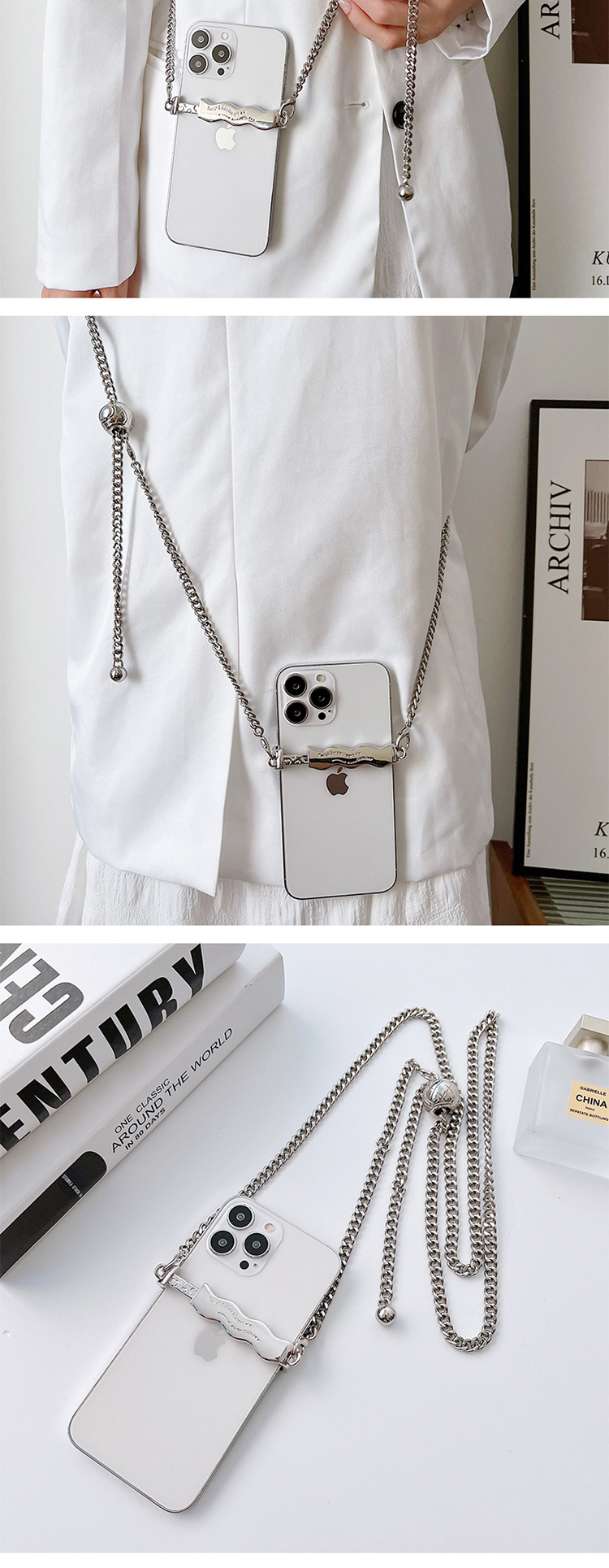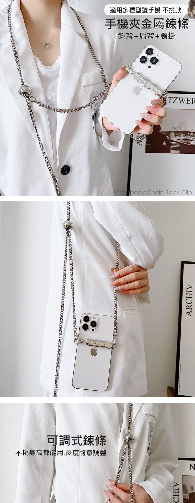 斜背手機鍊條 手機金屬掛繩 可調式斜背 斜背頸掛 iPhone/安卓手機通用款