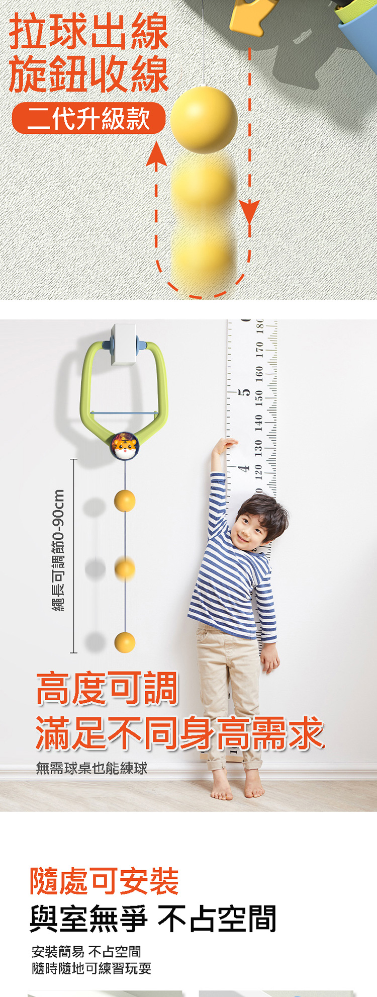 乒乓球線可直接拉出到適合長度,旋轉卡通旋鈕即可完成收線。