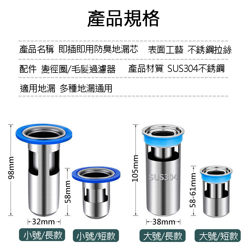 不銹鋼防臭地漏芯 防臭地漏芯 防臭器 防漏 即插即用廚房下水道地漏芯 下水道 衛生間 防反水