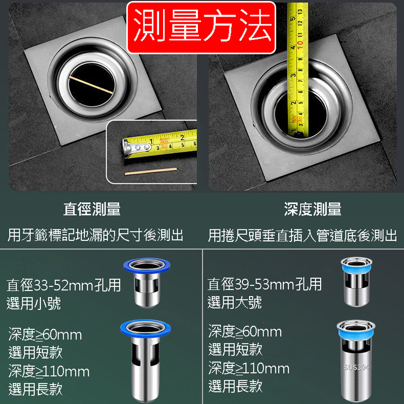 使用小叮嚀~選擇商品測量排水孔深度時,建議要預留2-3cm下水道排水空間,地漏芯不宜頂到底。