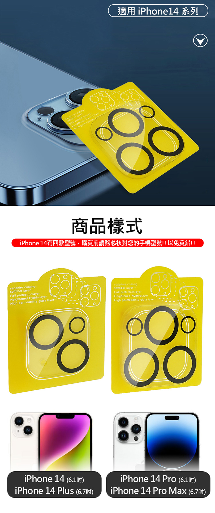 蘋果iPhone14手機後鏡頭保護膜 後攝像頭3D一體鏡頭鋼化膜 後膜玻璃保護