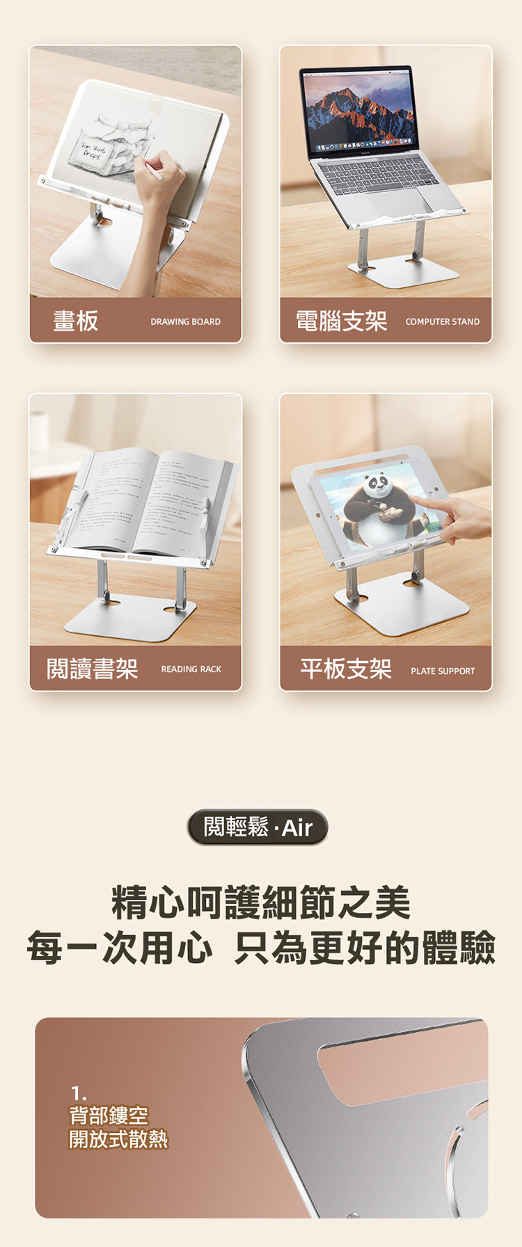 8.多功能支架,可放書本、食譜、筆電、平板電腦