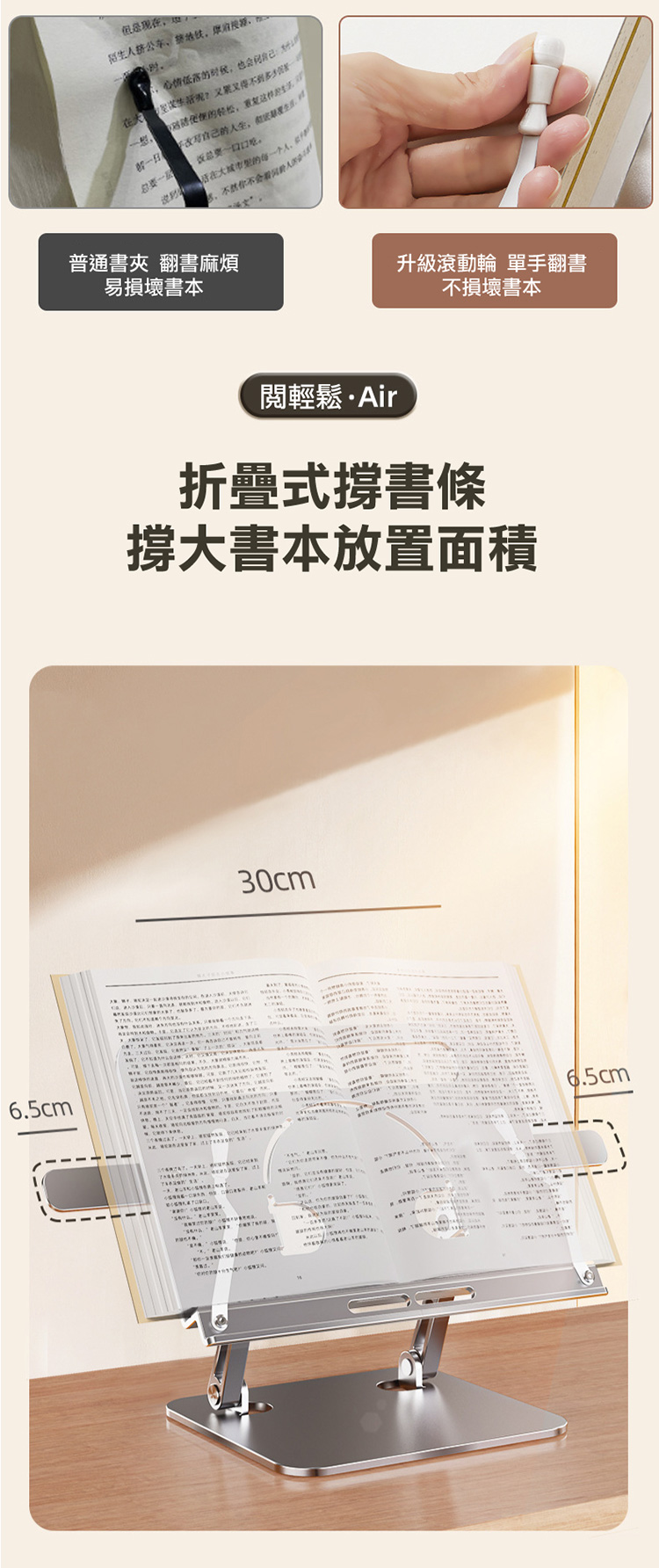 3.支撐力超強,能夠固定書本,並且圓頭書夾讓翻頁輕鬆容易