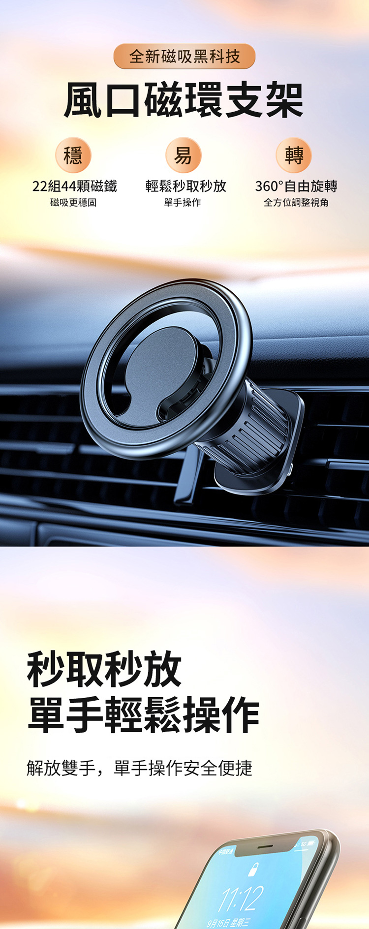魔環車架 Magsafe磁吸支架 適用iPhone12/13/14/15 magsafe 出風口磁吸支架 車用手機架 出風口/儀表板 2種選擇