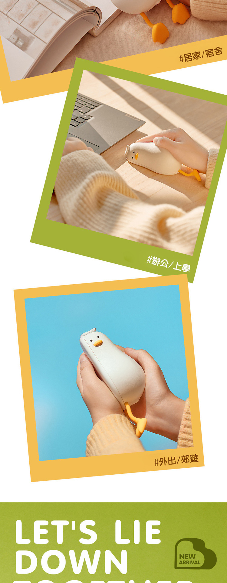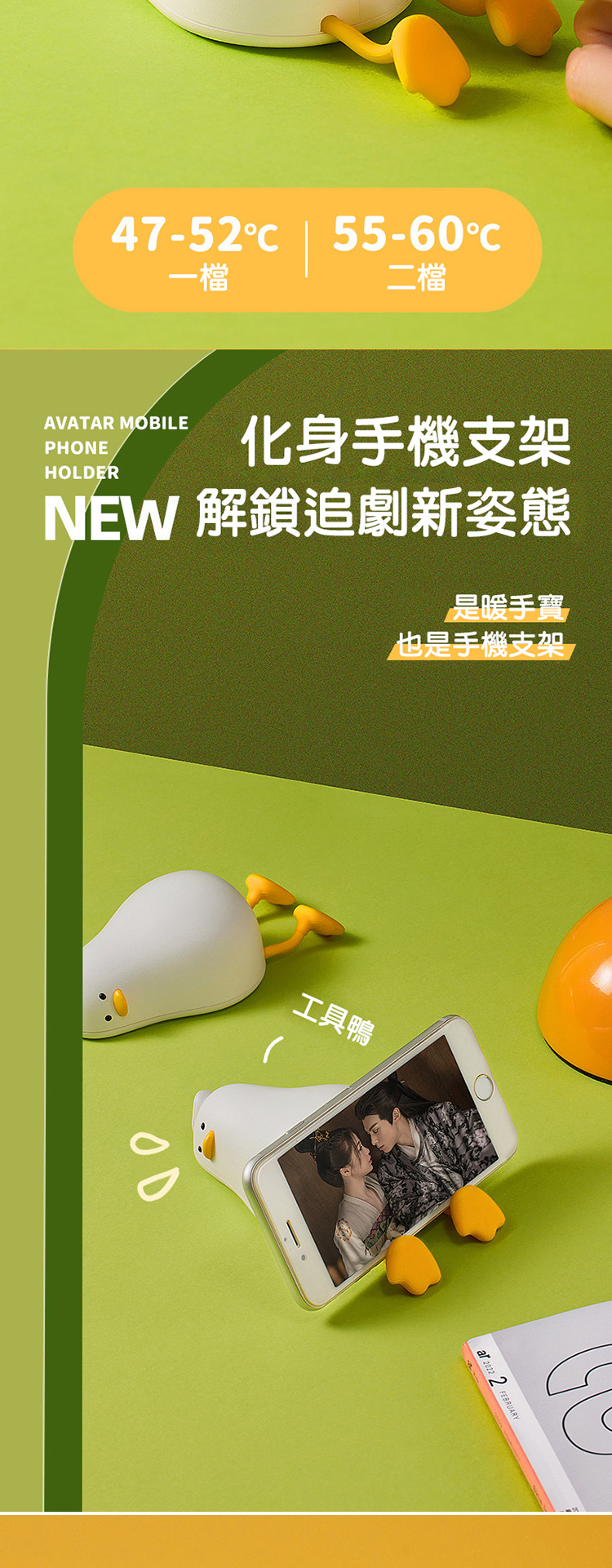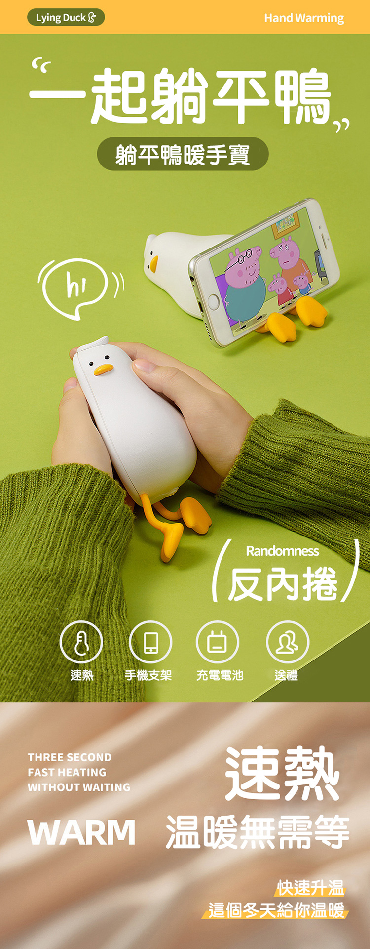 躺平鴨暖手寶 暖手寶 速熱 兩檔控溫 手機支架 迷你便攜 USB充電 交換禮物