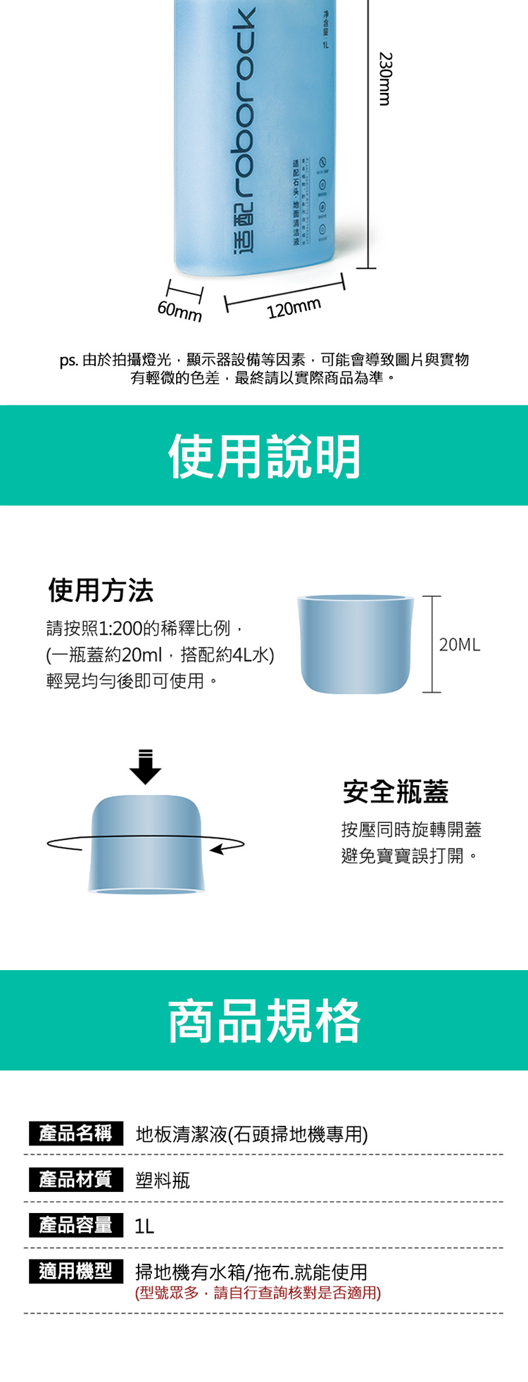 ※以上為使用示意圖,本商品僅清潔劑,不含掃地機。