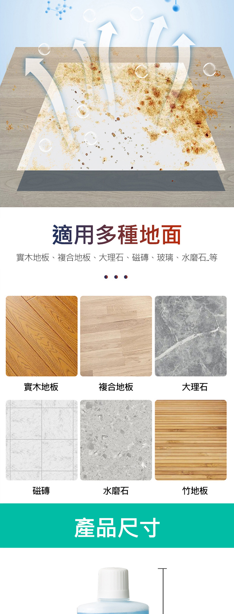 ▼適用於家庭環境中多種表面清潔~實木地板、複合地板、大理石、磁磚、玻璃、水磨石石英地板等材質。