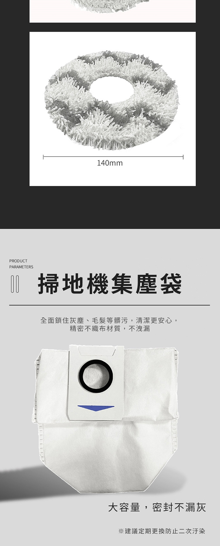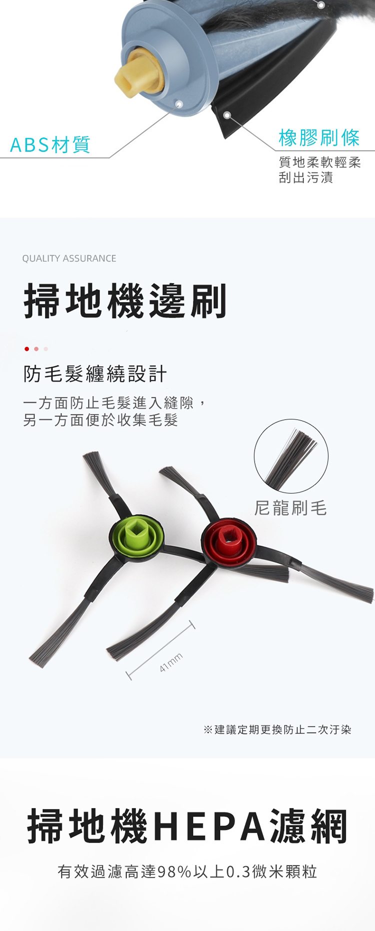 商品內容:主刷*1、邊刷*1組、濾網*2、拖布*2、集塵袋*1