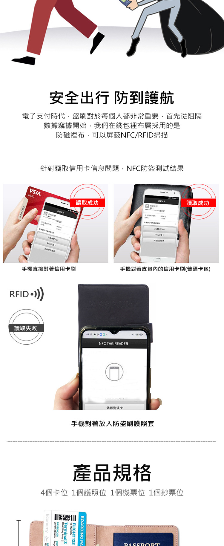 結構:4個卡位、1個護照位、1個機票位、1個鈔票/單據位
