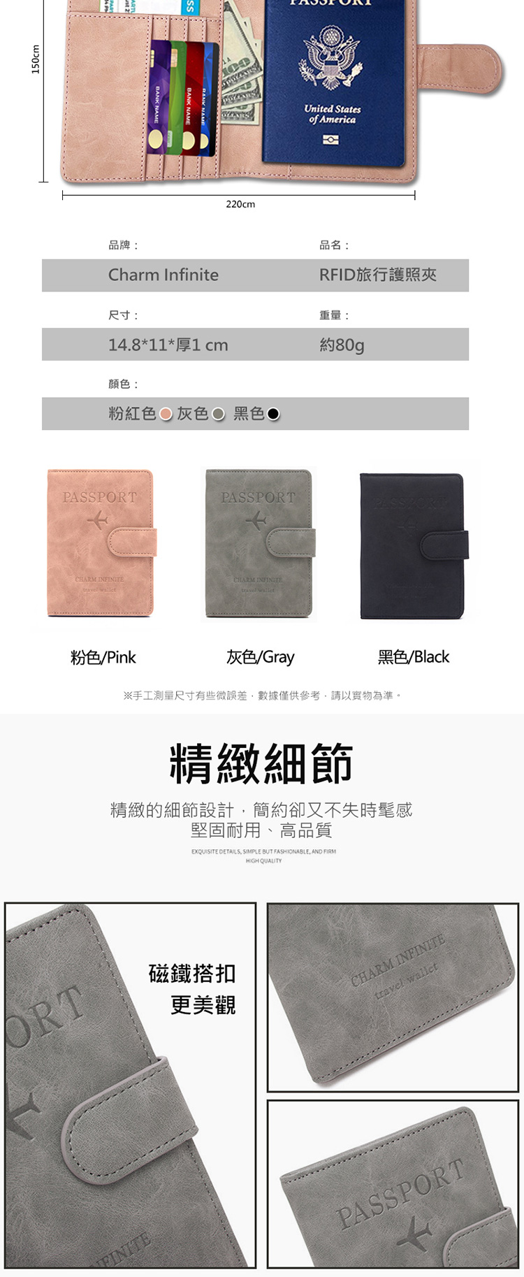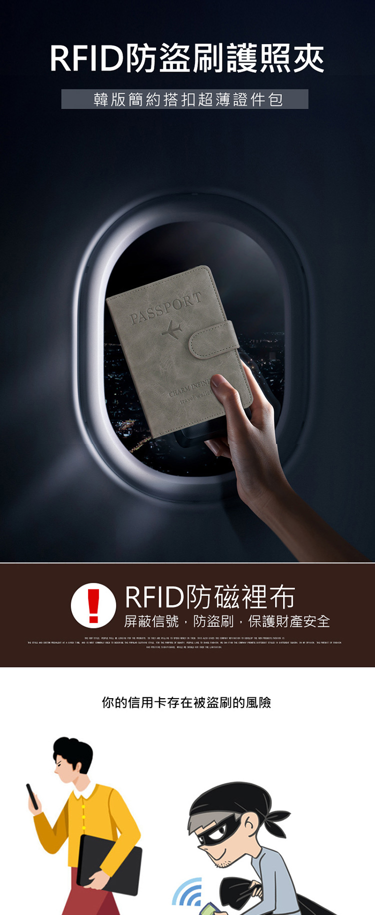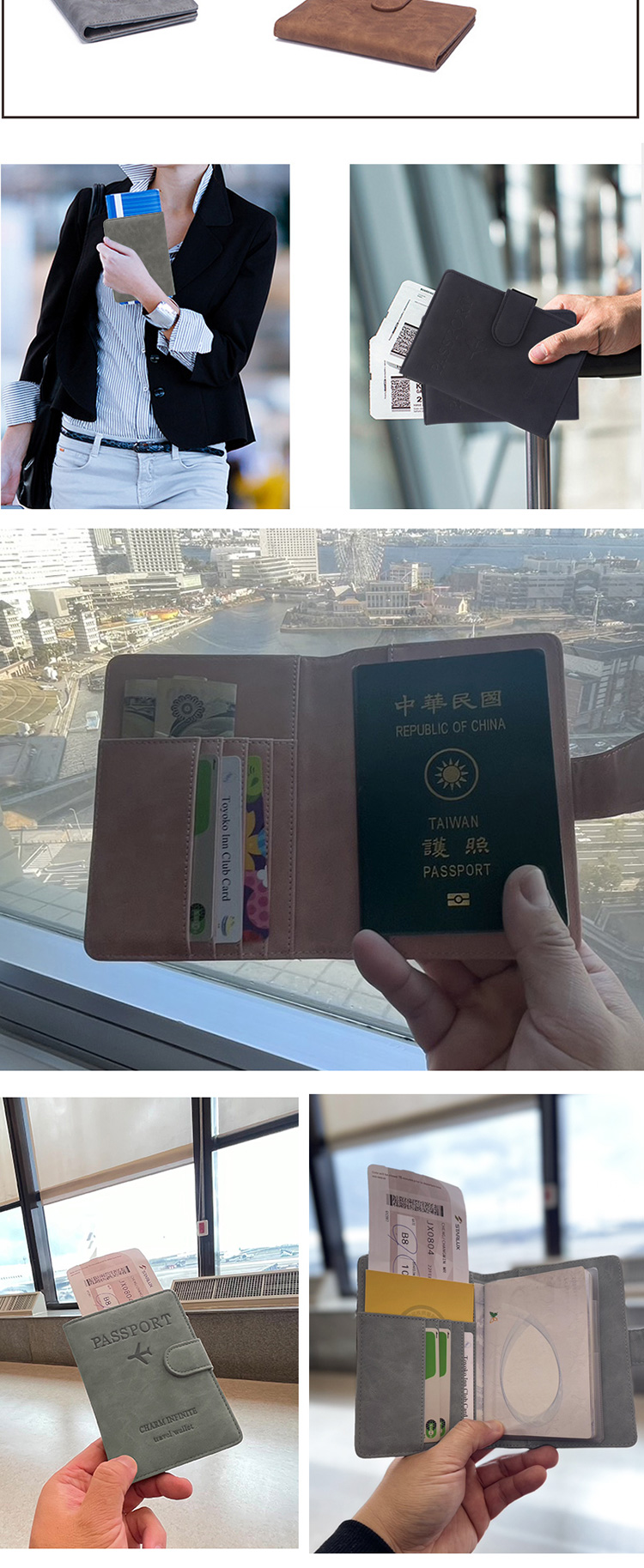 RFID 防盜刷護照夾 韓版簡約搭扣超薄證件包 皮革護照套 便攜式多功能證件夾