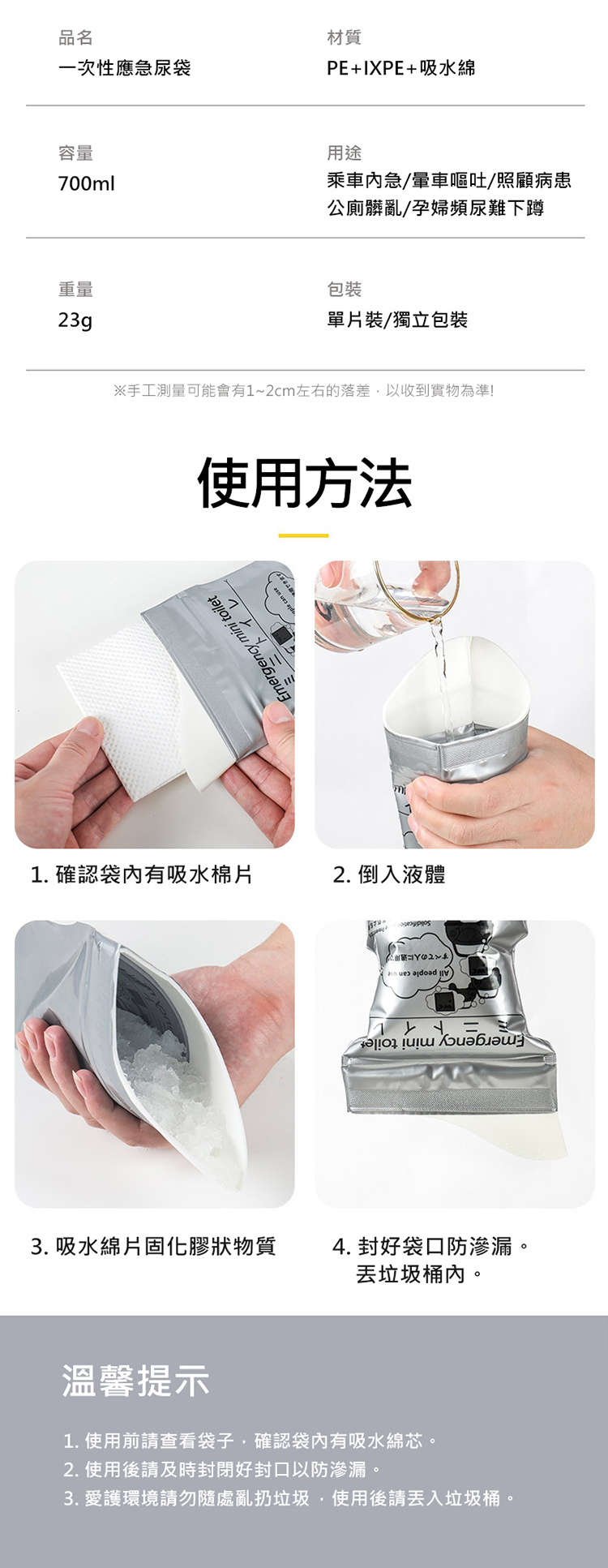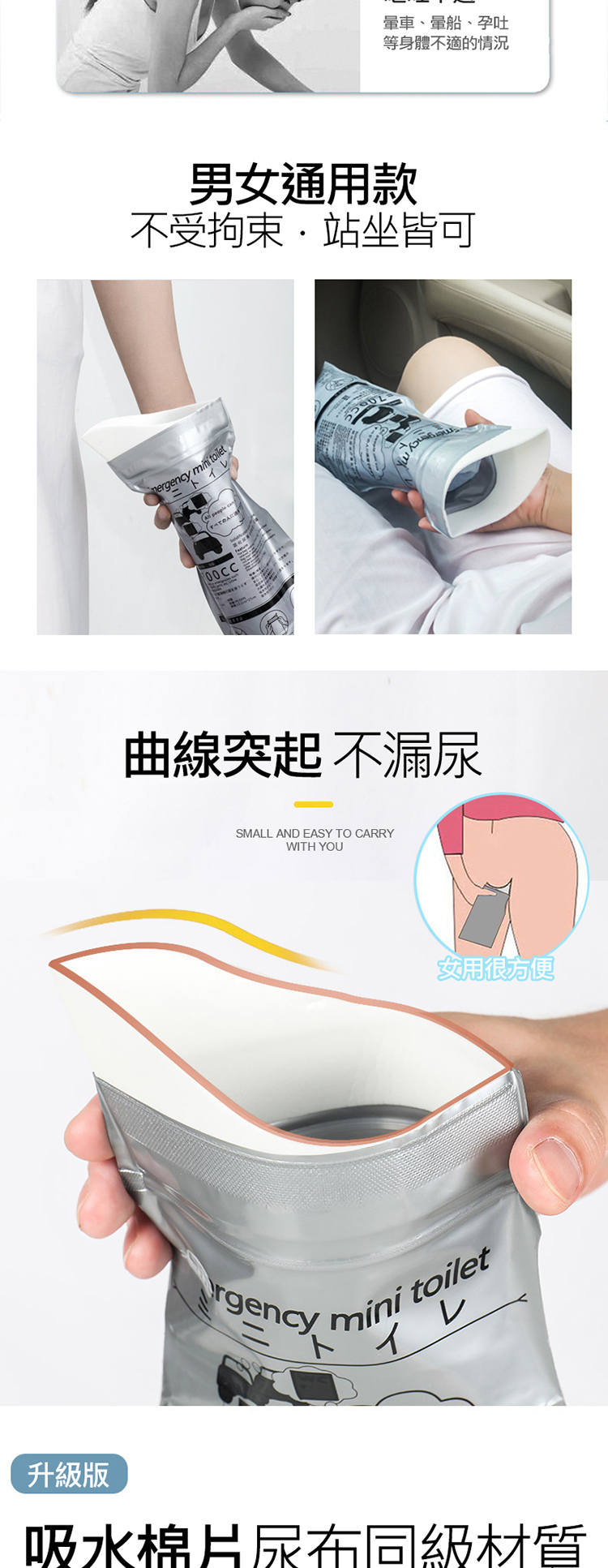 拋棄式尿袋 自駕游車載尿壺 旅行便攜應急小便器 攜帶式尿袋 隨身尿袋 兒童/男女通用 自駕旅行常備