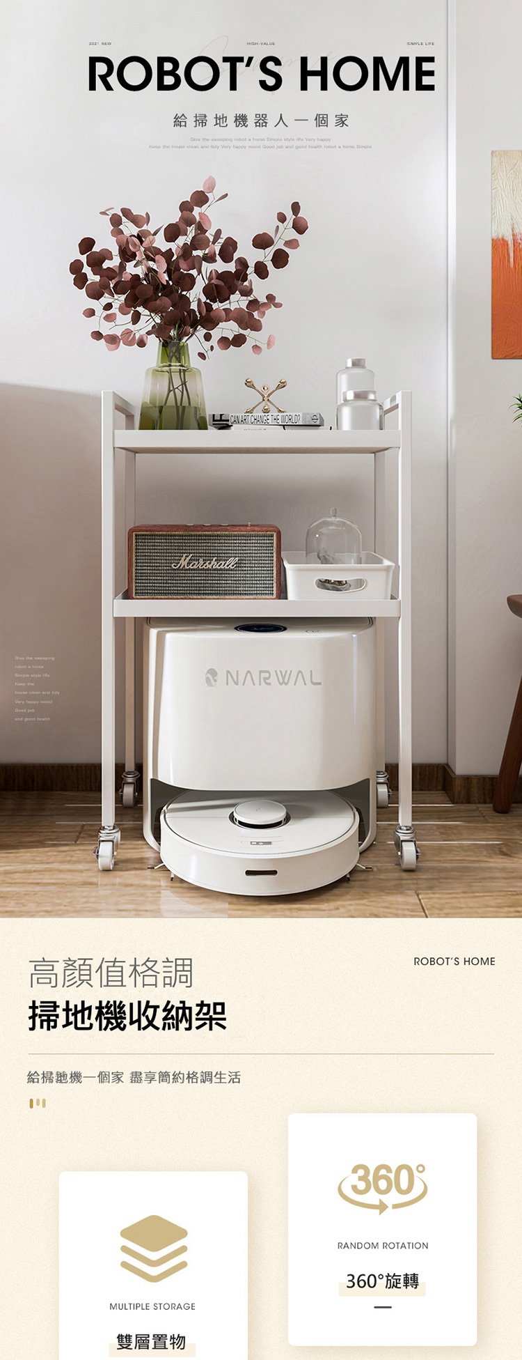 【高腳款103cm】雙層掃地機器人置物架-附滾輪 掃地機整理架 小推車收納架 二層收納架 鐵架 貨架