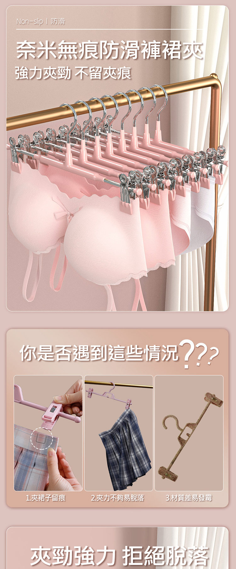 無痕掛衣 裙夾子無痕 不銹鋼強力褲子晾衣架 掛褲架 內衣 浸塑 乾濕兩用
