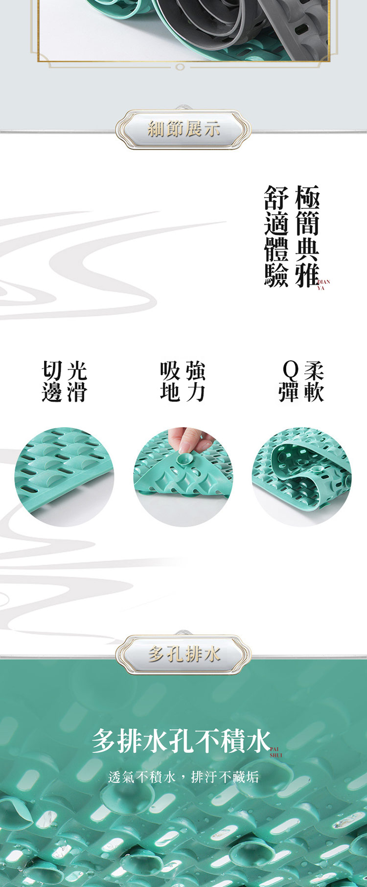 環保無味,強力吸盤,雙面防滑,多孔設計,加速排水!