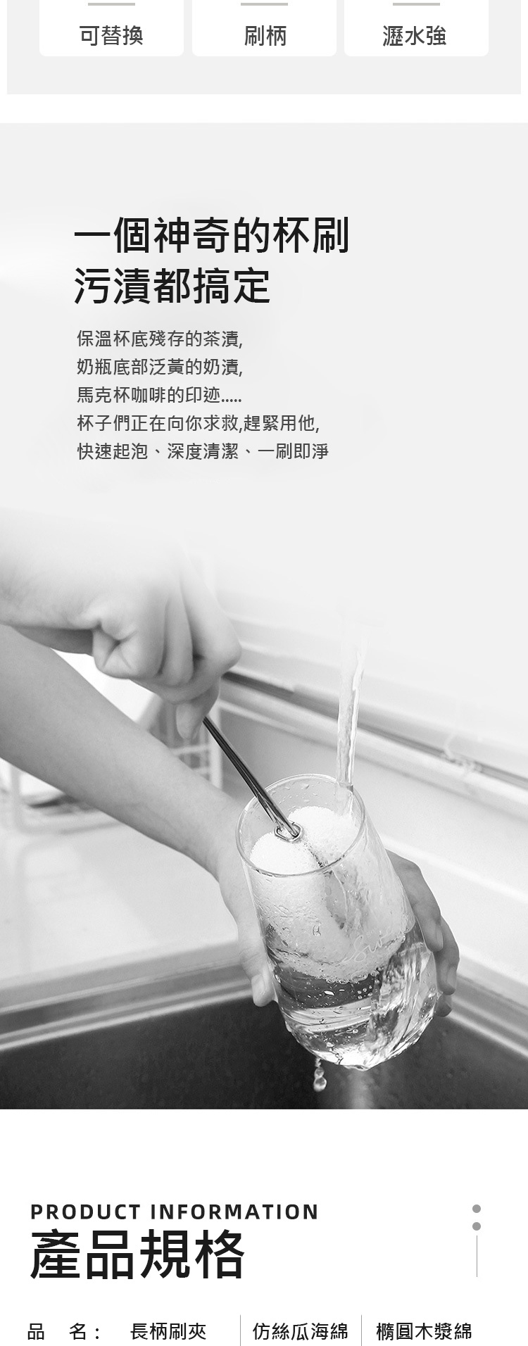 ◆加長+掛勾手柄,長瓶身也能刷,掛勾好收納