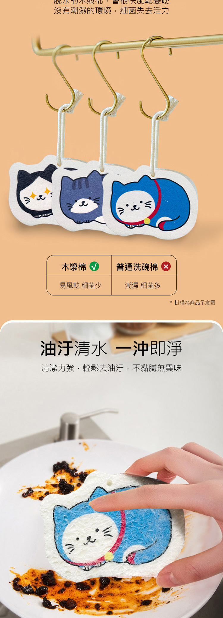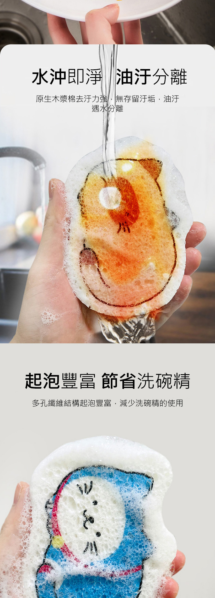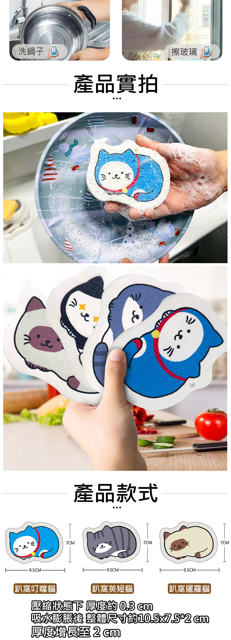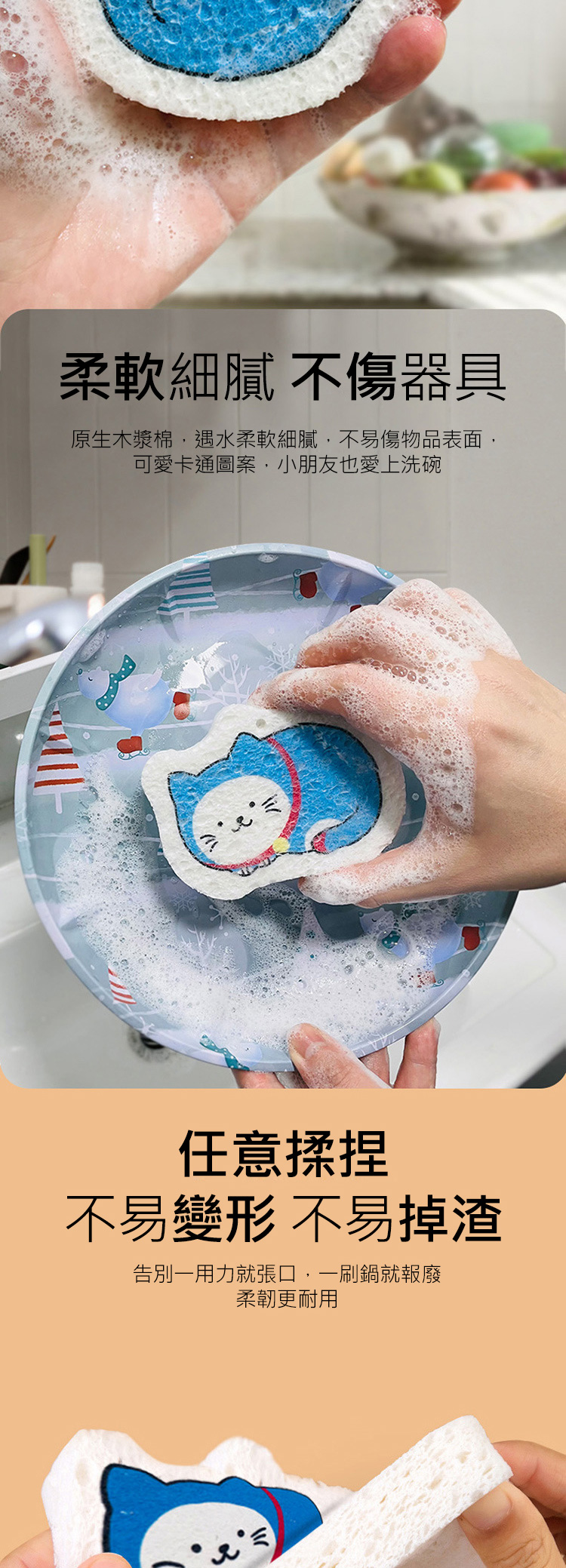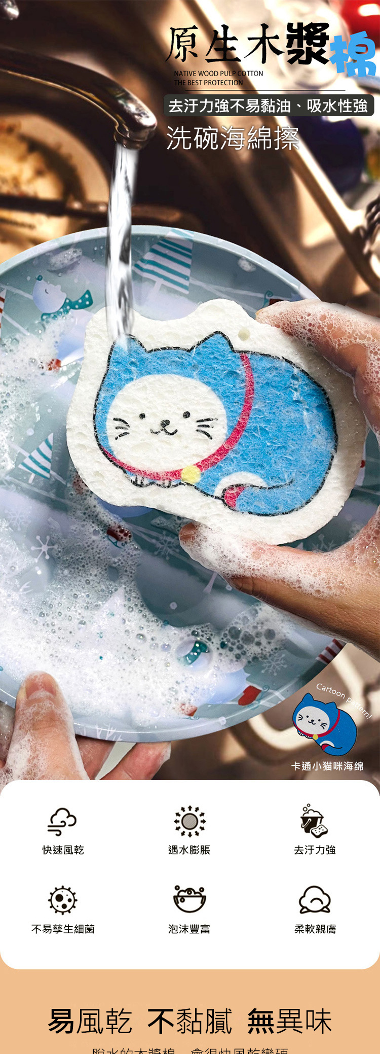 洗碗布 洗碗海綿 洗碗刷 海綿菜瓜布 造型菜瓜布 廚房 清潔 吸水不沾油 天然木漿材質 魔力擦 (趴窩貓咪三件系列)