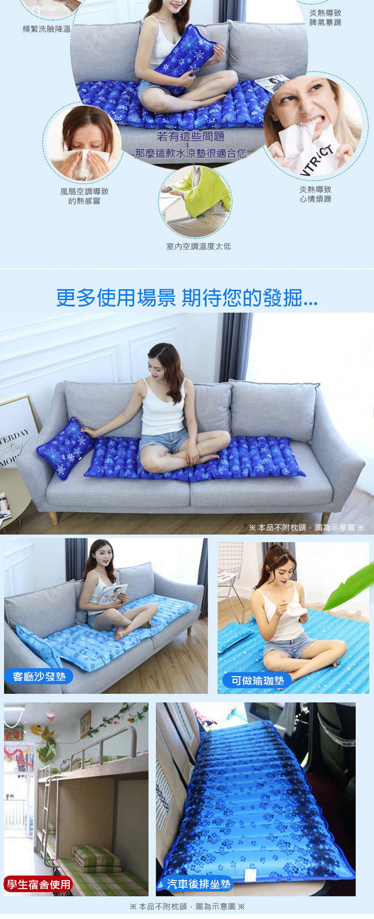 消暑涼夏 沙發水涼墊 沙發降溫墊 水墊 冰涼墊 涼感冰墊 坐墊 椅墊 宿舍水冷墊 水床墊 (160x50cm)