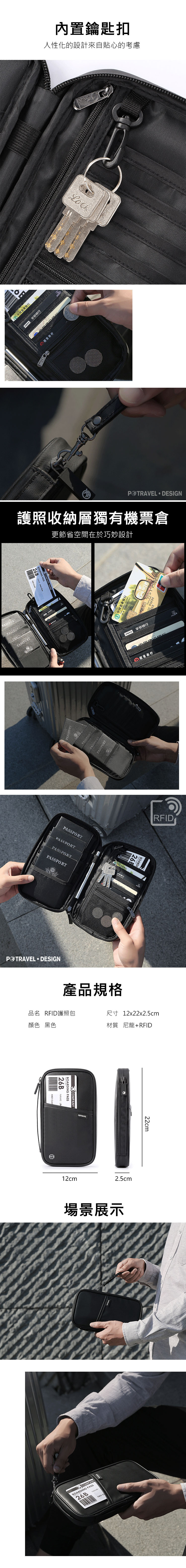 P.travel RFID防盜刷家庭護照收納包 多功能旅行證件包/護照套 便攜式證件包